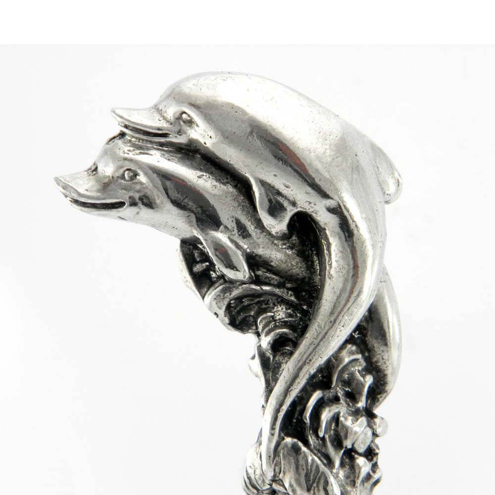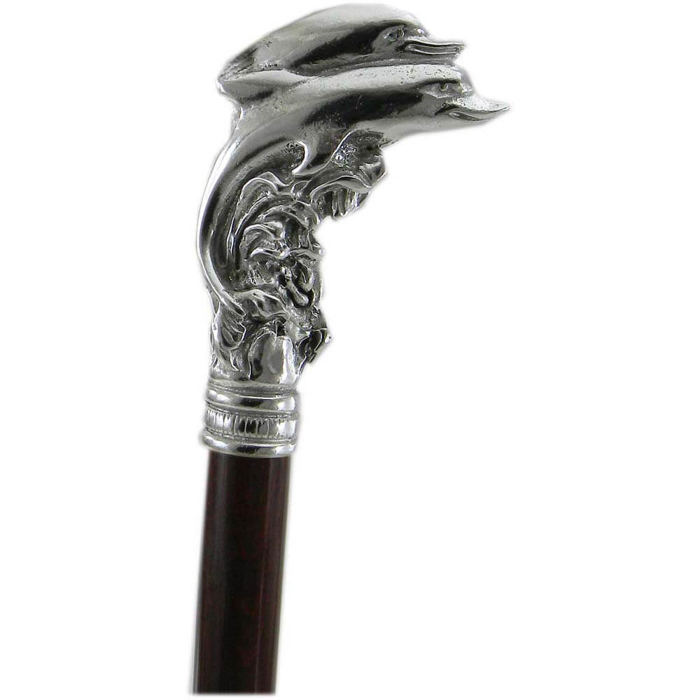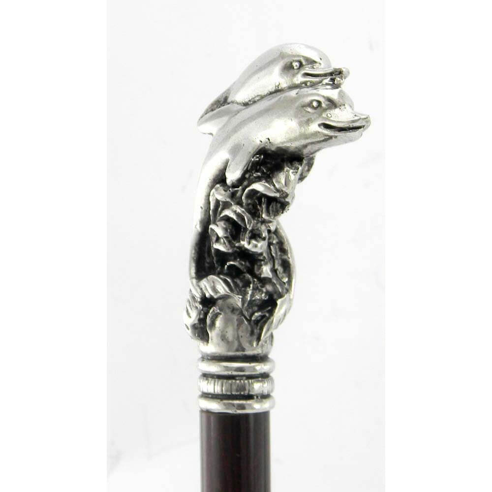 Bastone da passeggio in legno e peltro impugnatura delfini | E-Italy | 100% Made in Italy