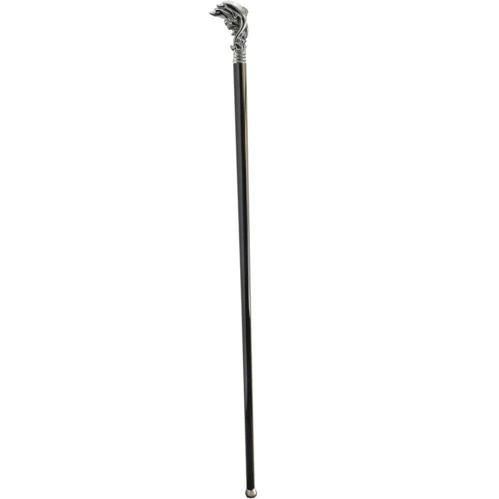 Bastone da passeggio in legno e peltro impugnatura delfini