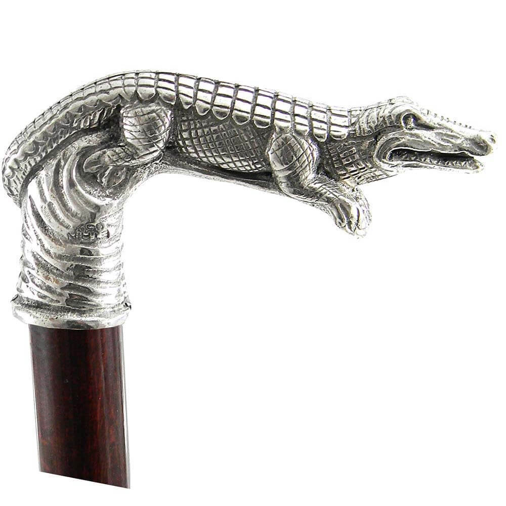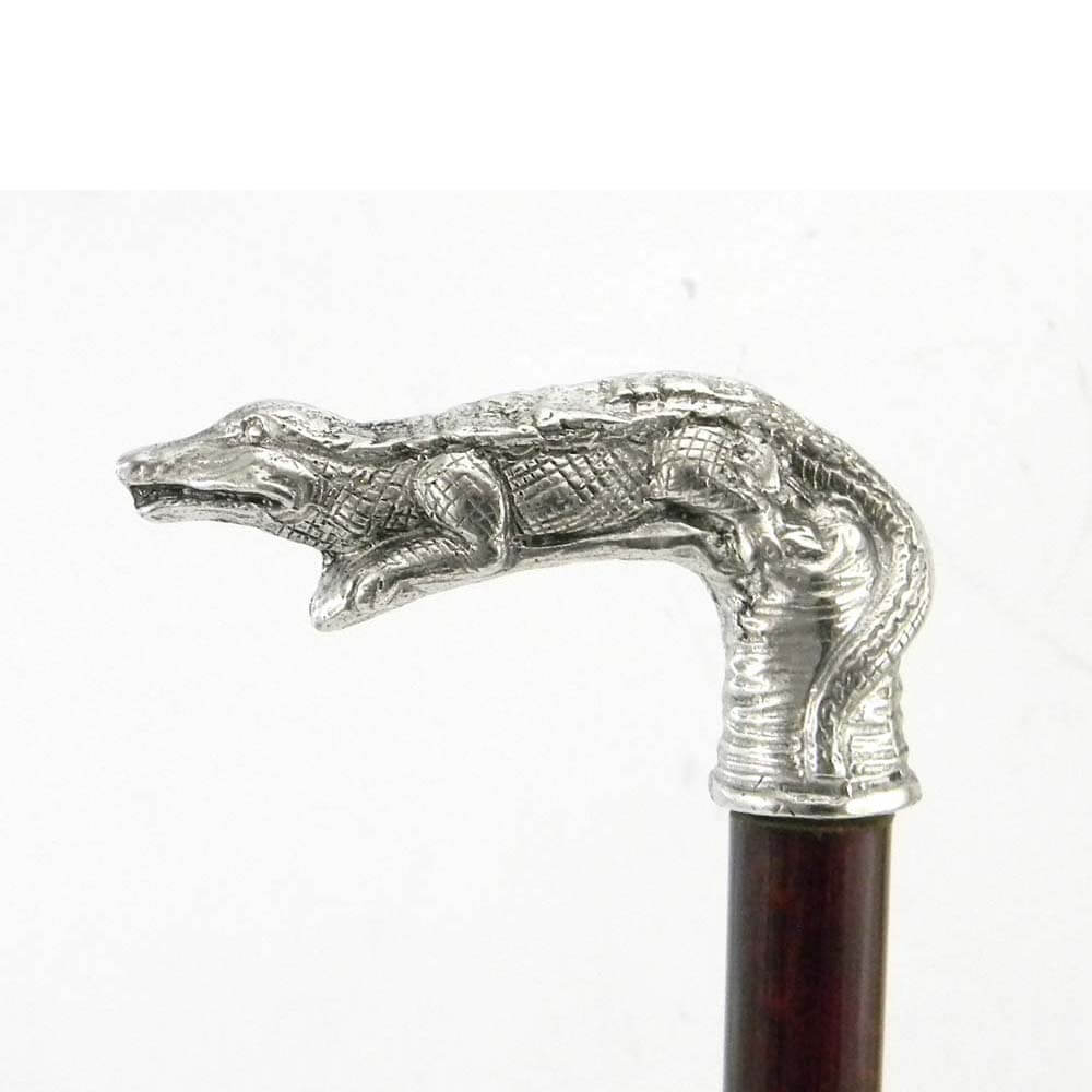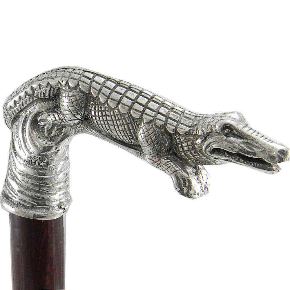 Bastone da passeggio in legno e peltro impugnatura coccodrillo | E-Italy | 100% Made in Italy