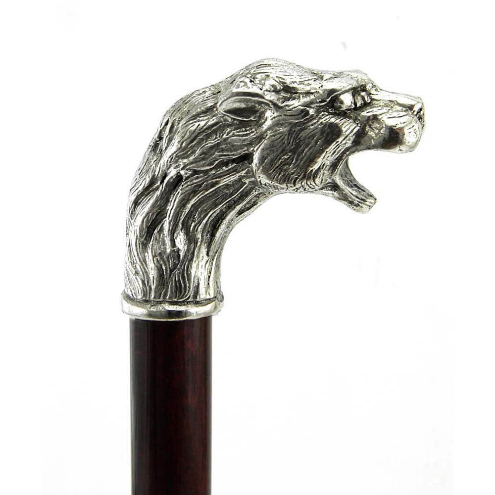 Bastone da passeggio in legno e peltro impugnatura testa di leone | E-Italy | 100% Made in Italy
