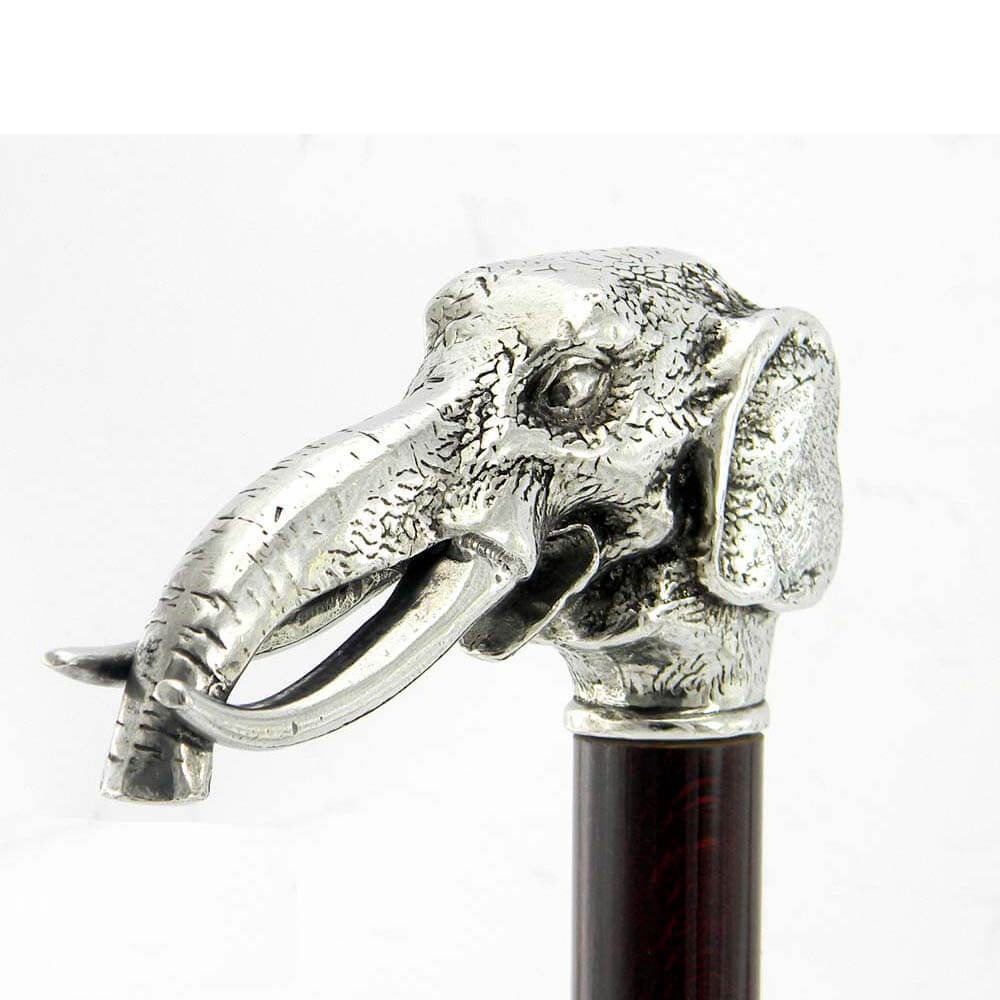 Bastone da passeggio in legno e peltro impugnatura elefante | E-Italy | 100% Made in Italy