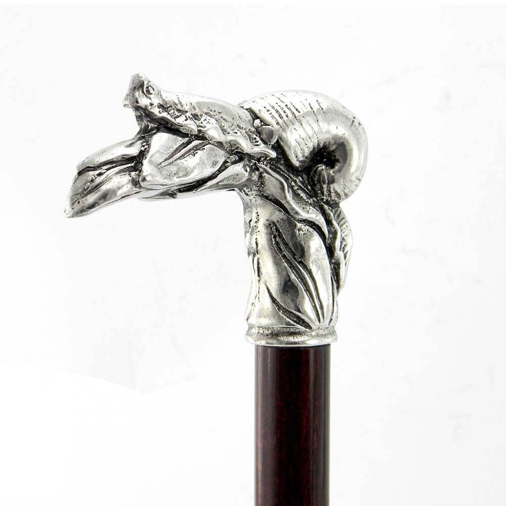 Bastone da passeggio in legno e peltro impugnatura lumaca | E-Italy | 100% Made in Italy