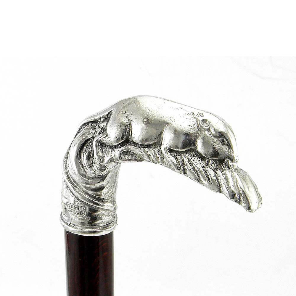 Bastone da passeggio in legno e peltro impugnatura topolino | E-Italy | 100% Made in Italy