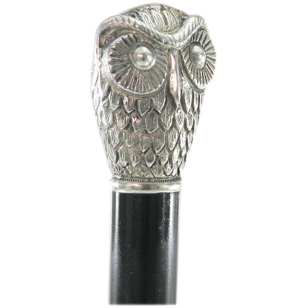 Bastone da passeggio in legno e peltro impugnatura civetta