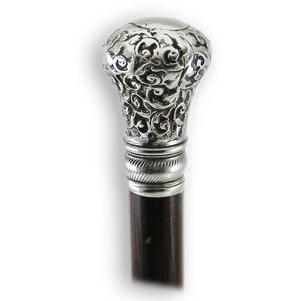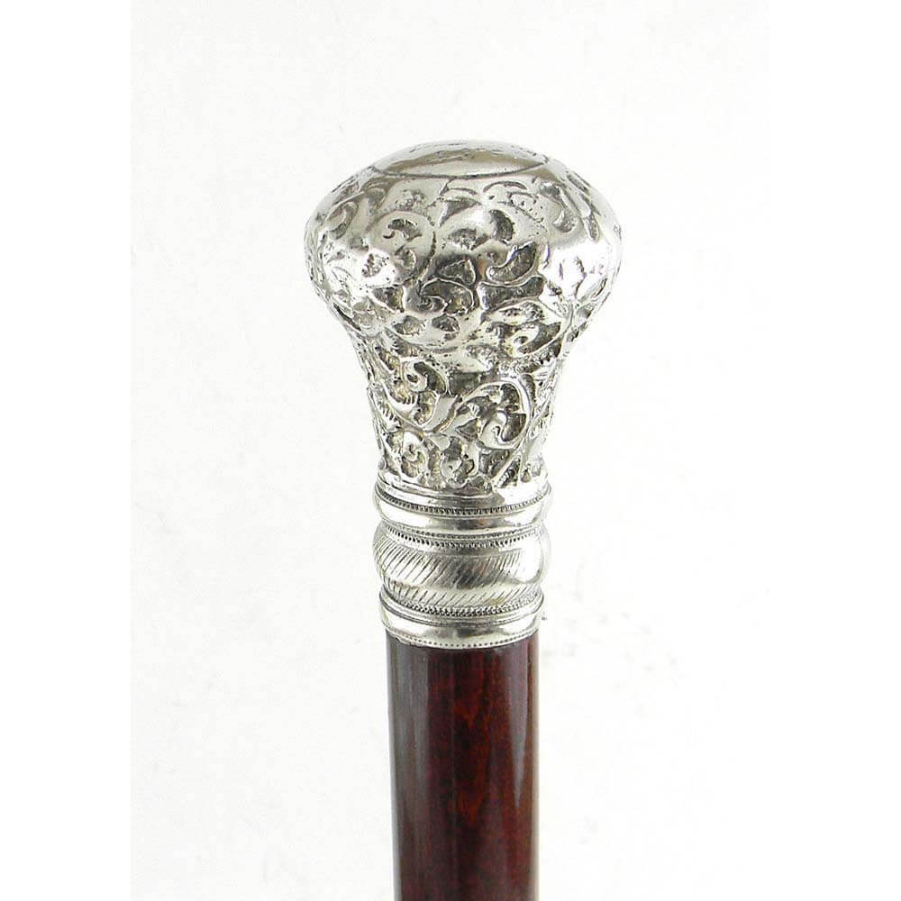 Bastone da passeggio in legno e peltro impugnatura sferica liberty