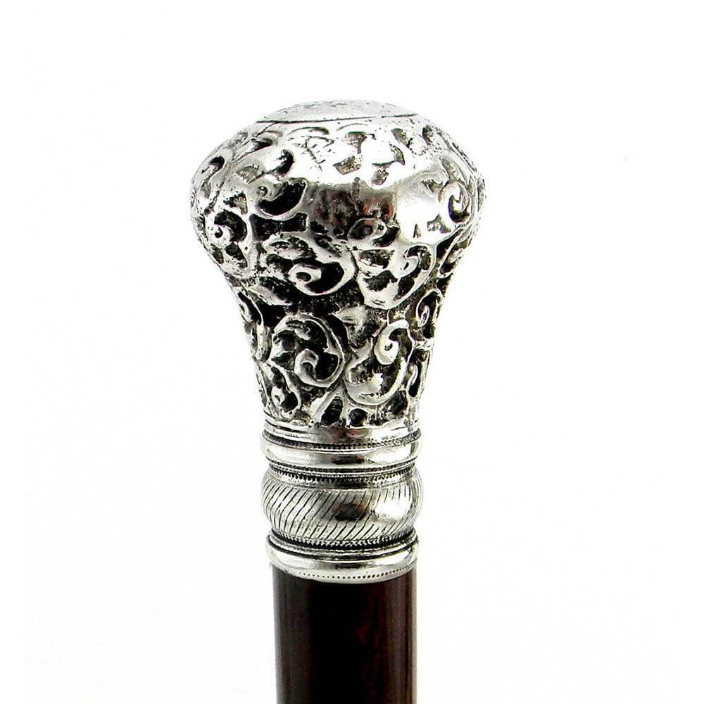 Bastone da passeggio in legno e peltro impugnatura sferica liberty | E-Italy | 100% Made in Italy