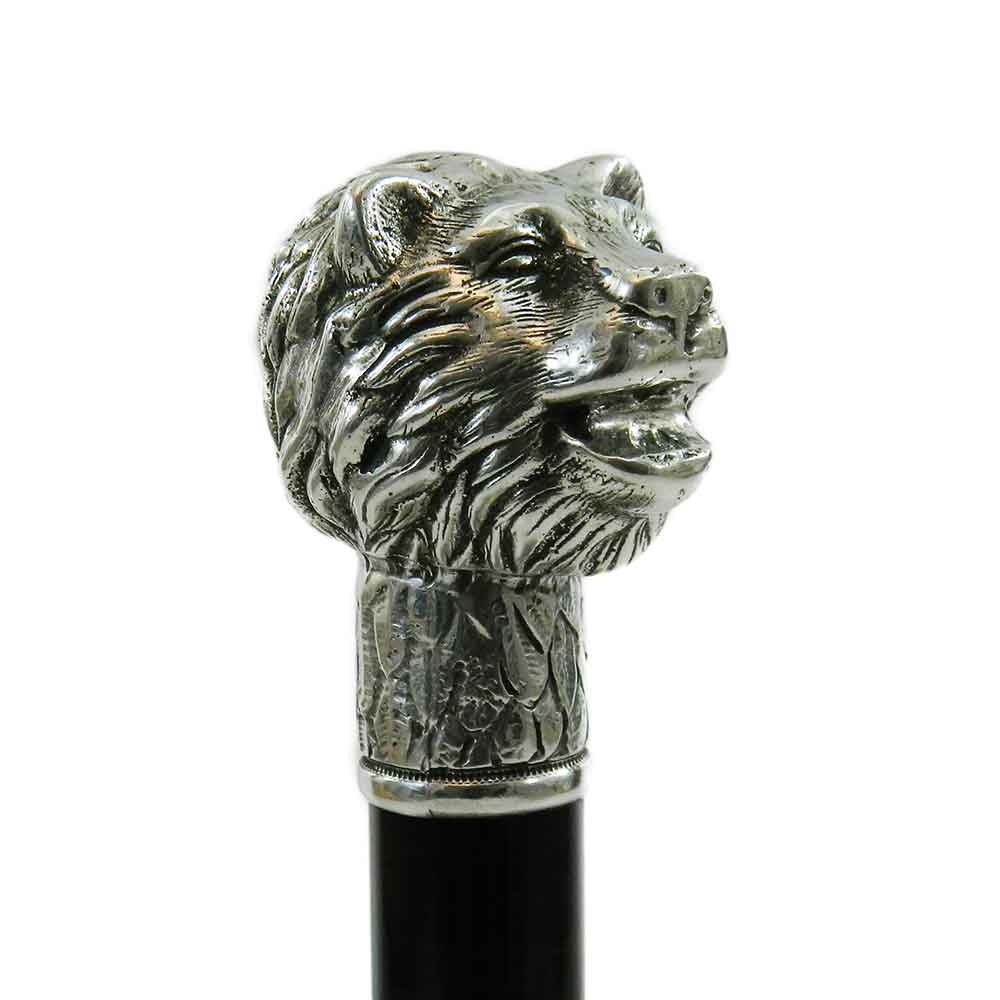 Bastone da passeggio in legno e peltro impugnatura testa d'orso