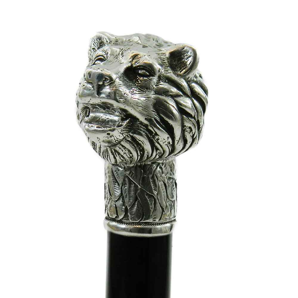 Bastone da passeggio in legno e peltro impugnatura testa d'orso | E-Italy | 100% Made in Italy