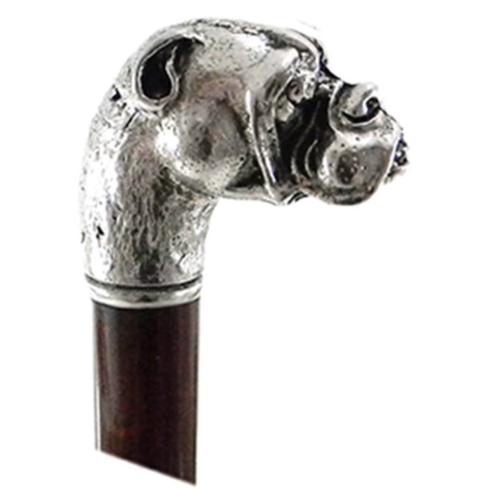 Spazierstock aus Zinn und Massivholz Boxer Hund silber Farbe Cavagnini