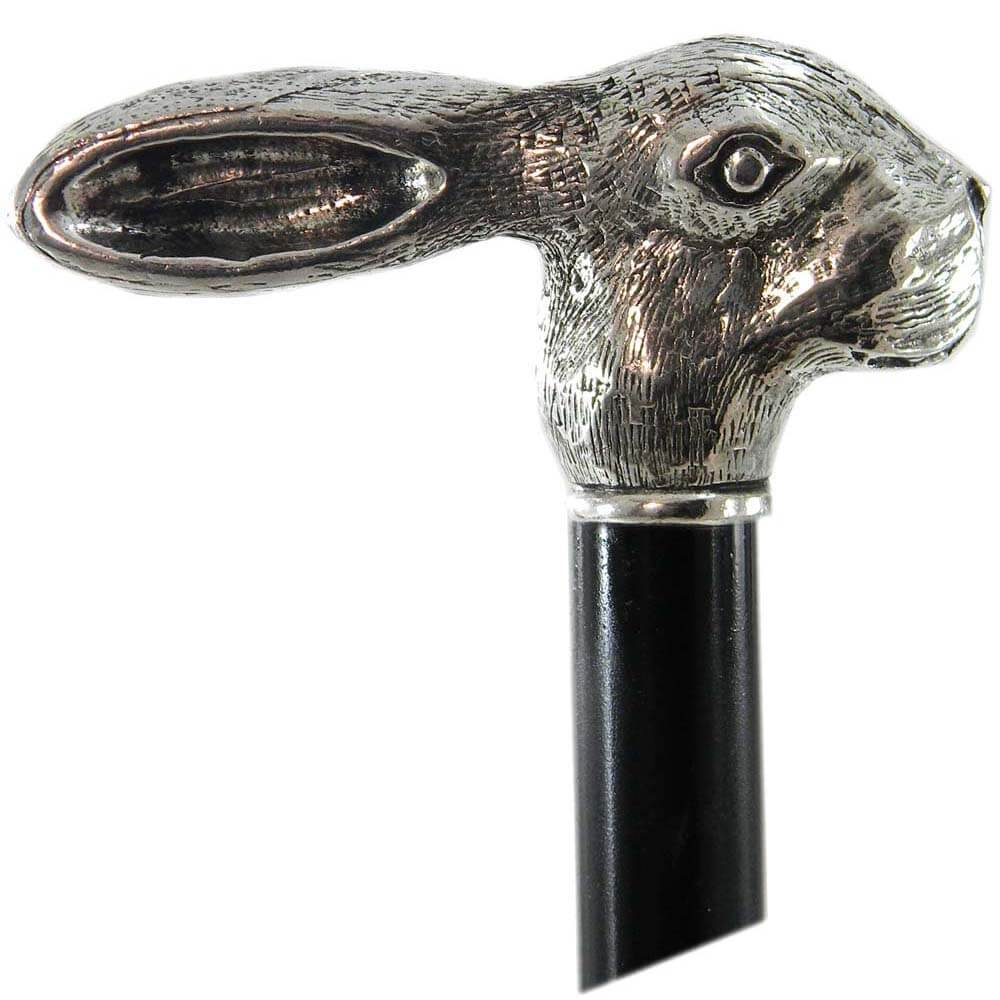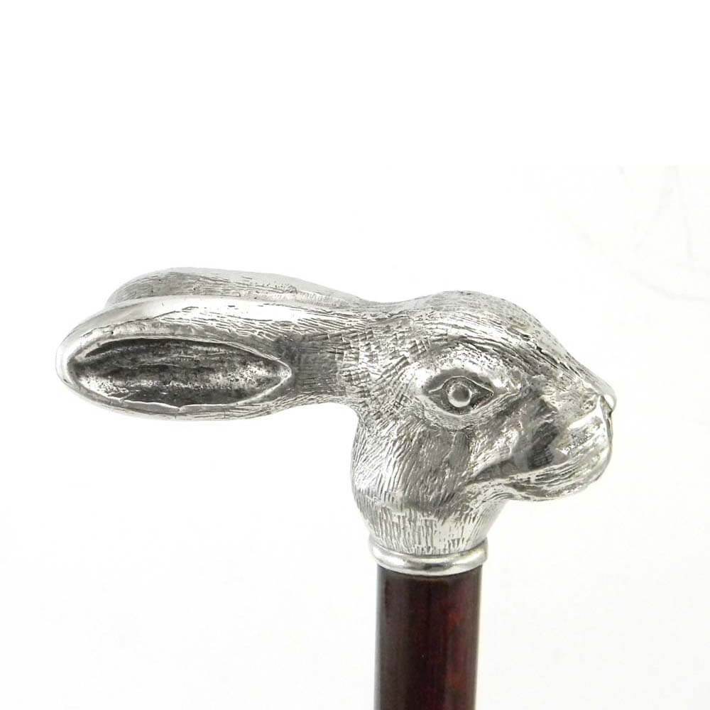 Bastone da passeggio in legno e peltro impugnatura leprotto