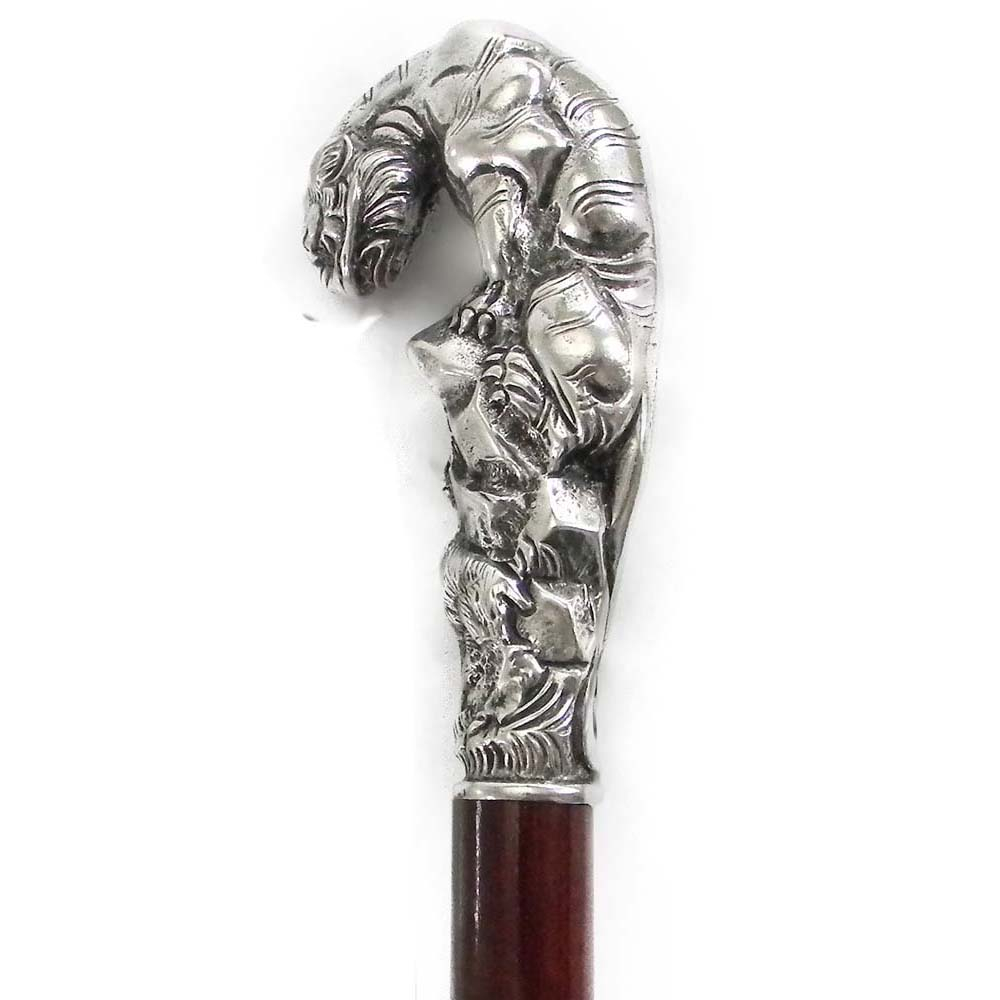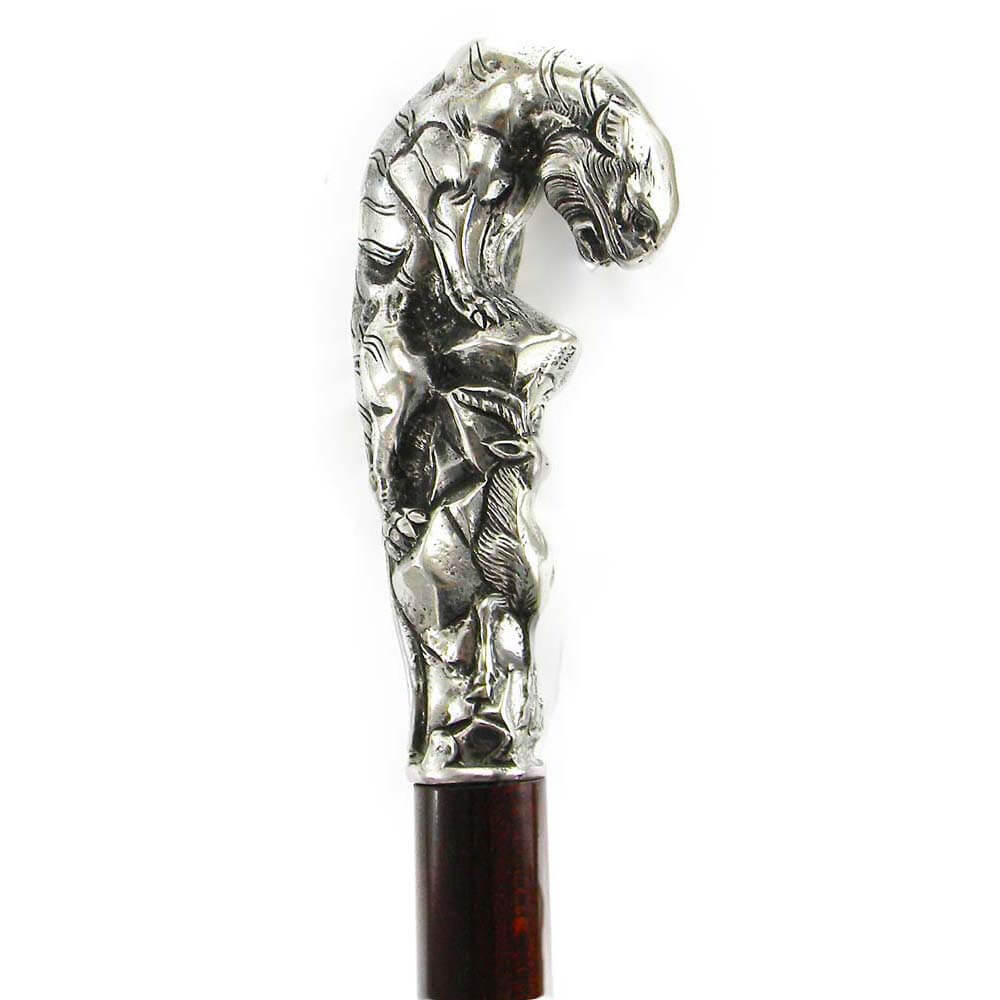 Bastone da passeggio in legno e peltro impugnatura puma | E-Italy | 100% Made in Italy
