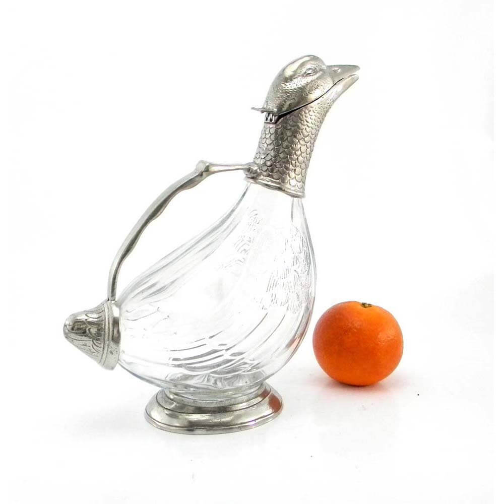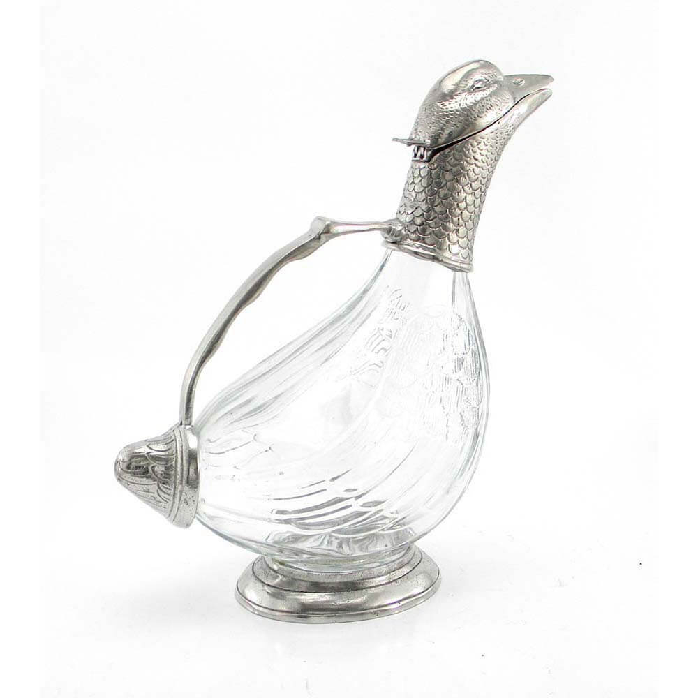 Brocca in vetro soffiato e peltro a forma di gallina | E-Italy | 100% Made in Italy