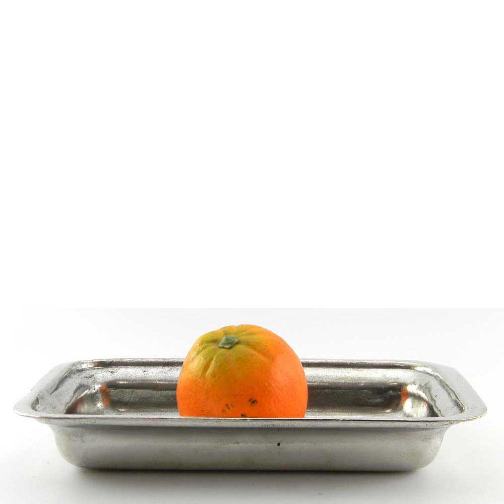 Vassoio rettangolare portafrutta in peltro lavorato a mano