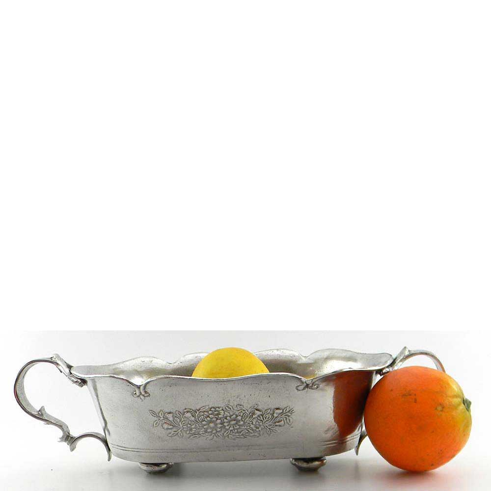 Vassoio rettangolare in peltro lavorato a mano
