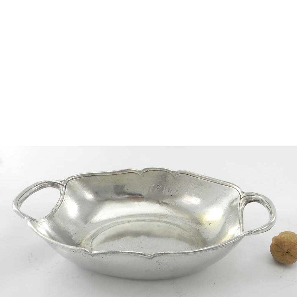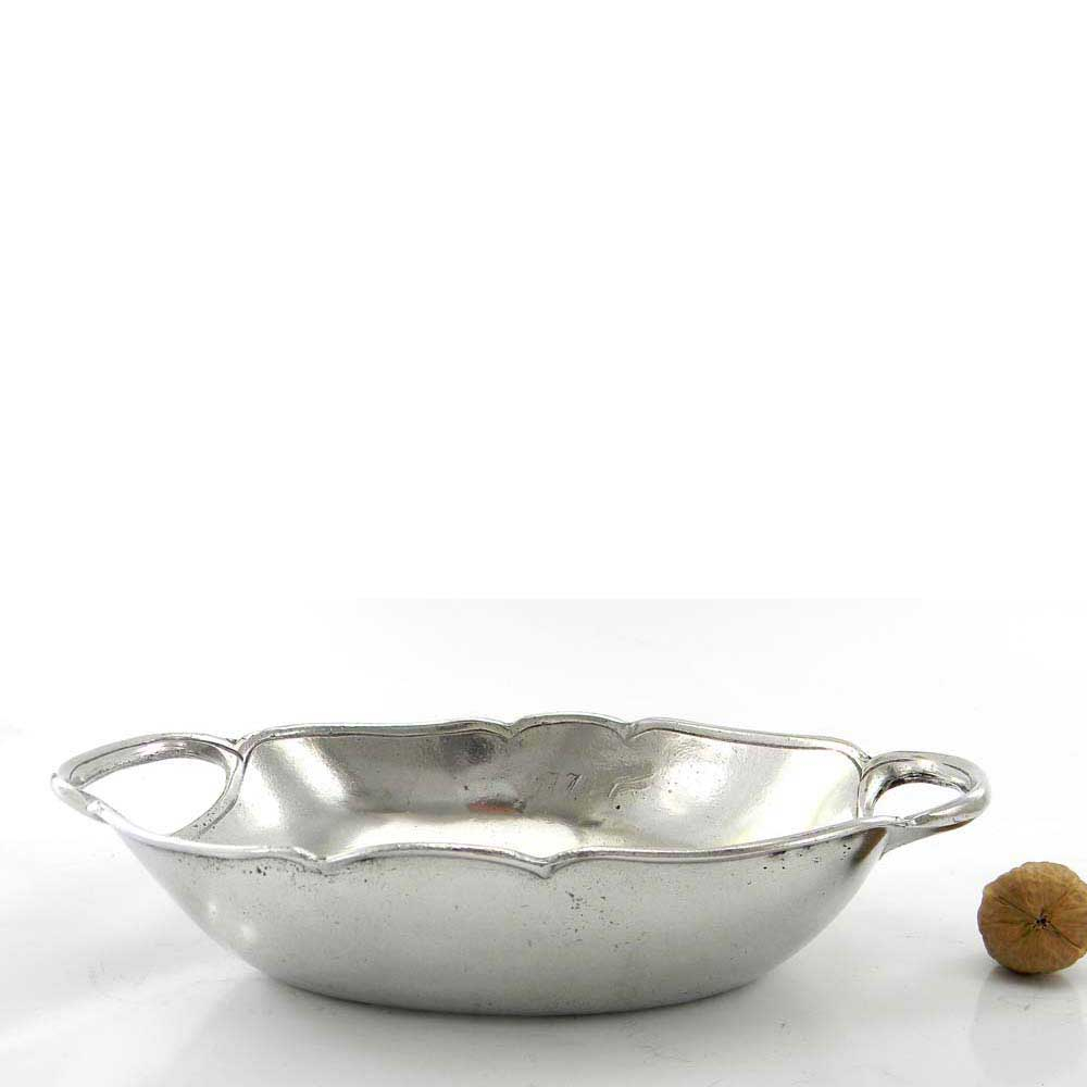 Vassoio ovale in peltro con manici integrati lavorato a mano