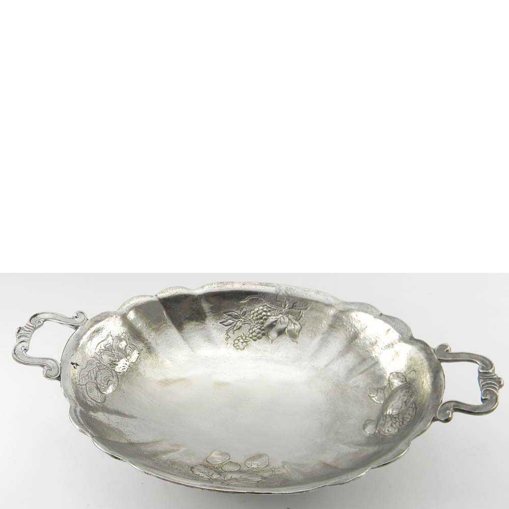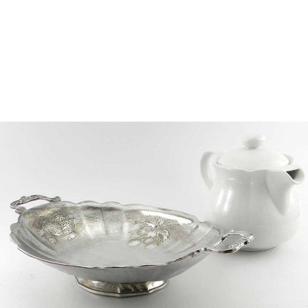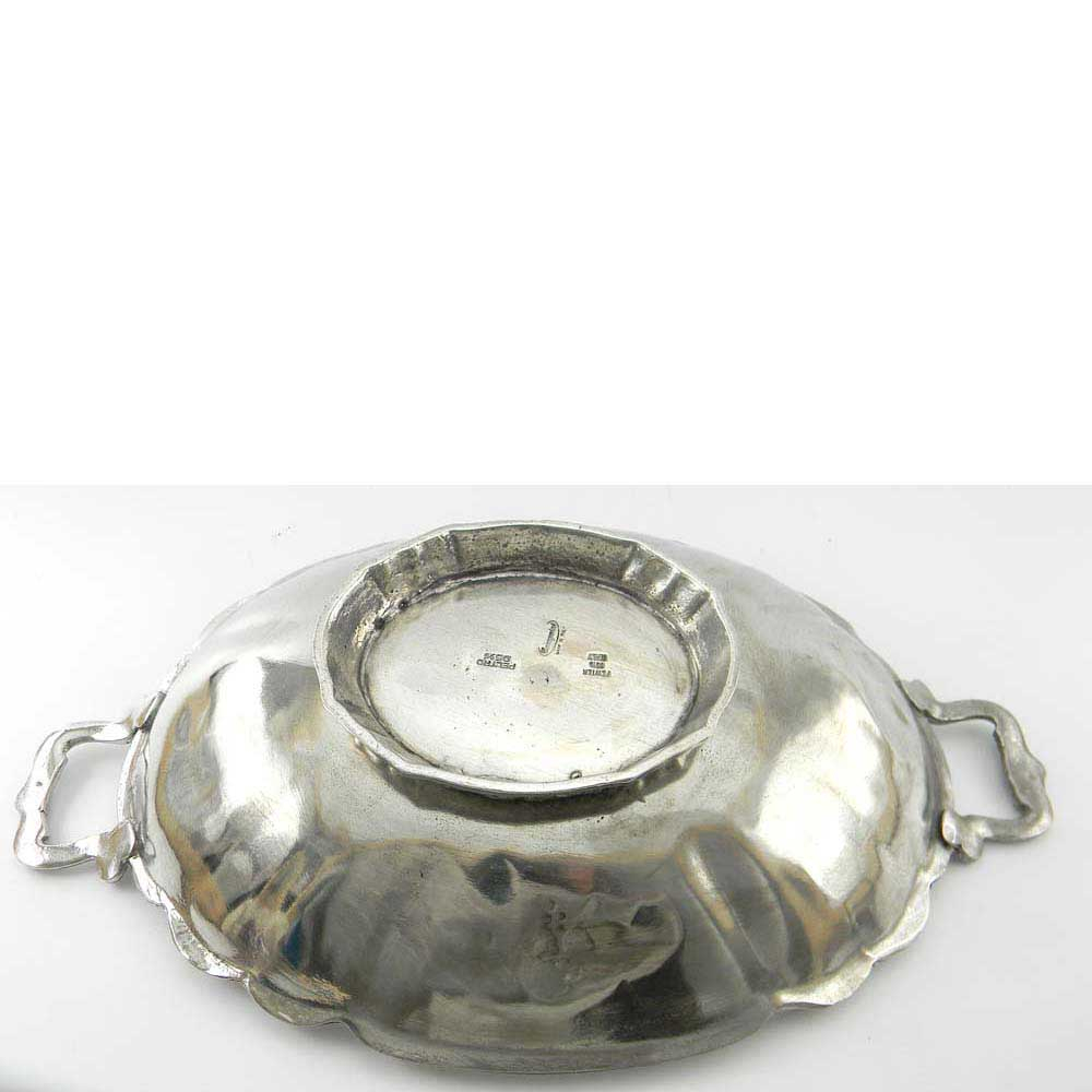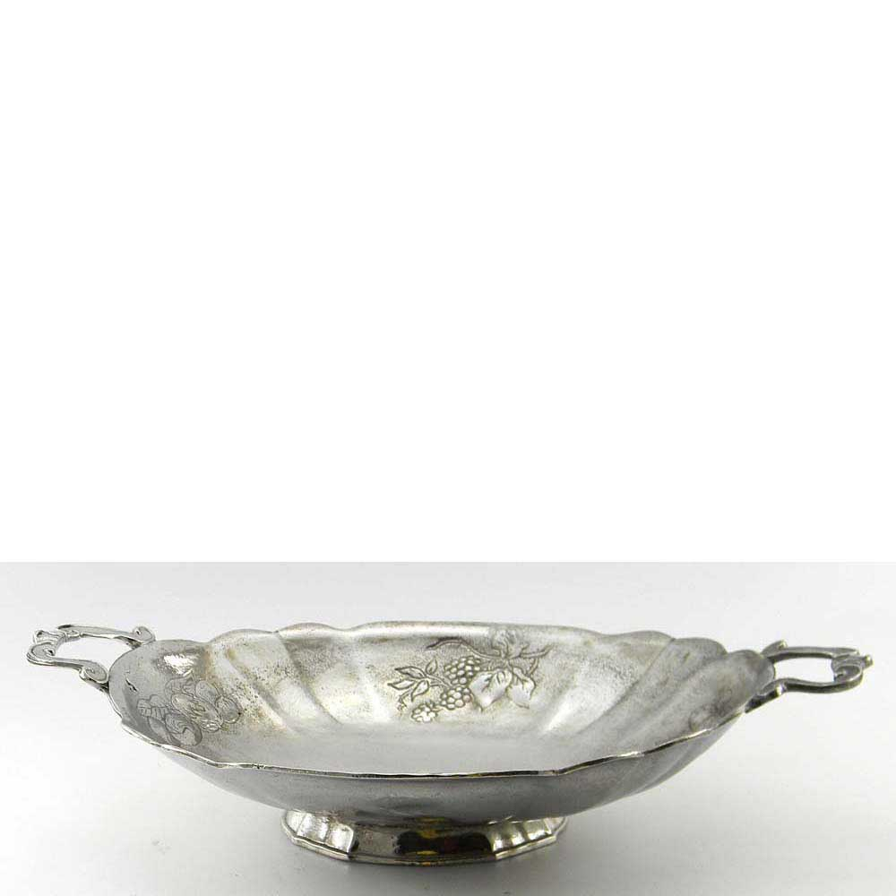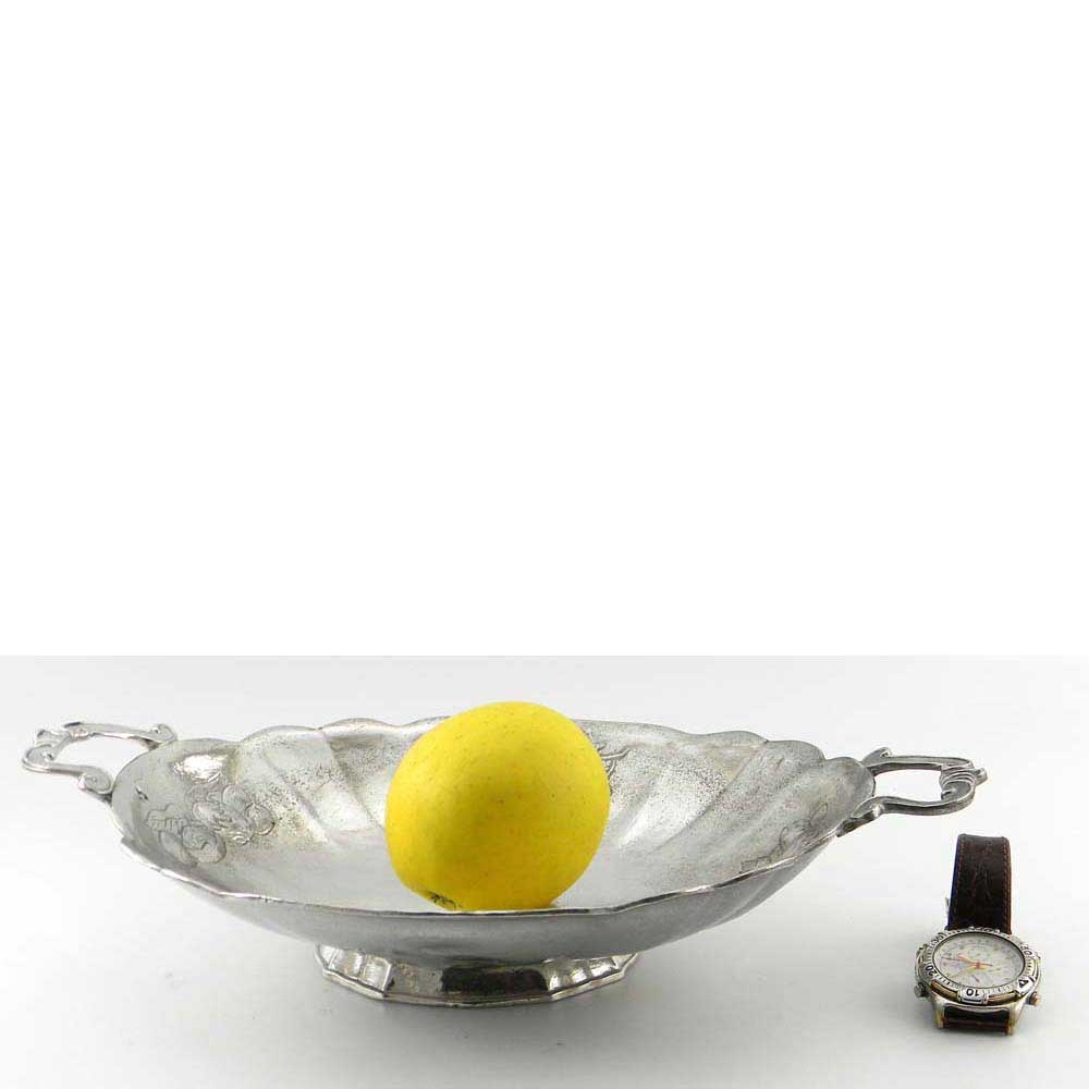 Vassoio in peltro con manici lavorato a mano