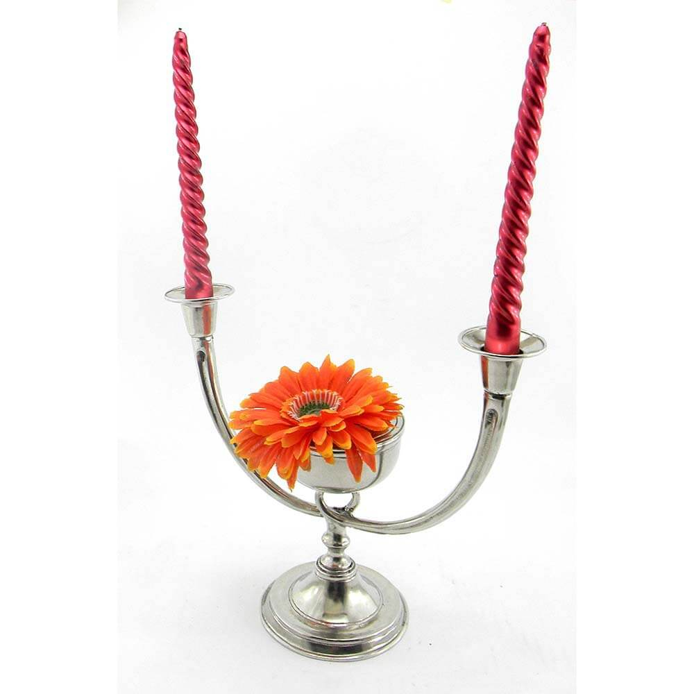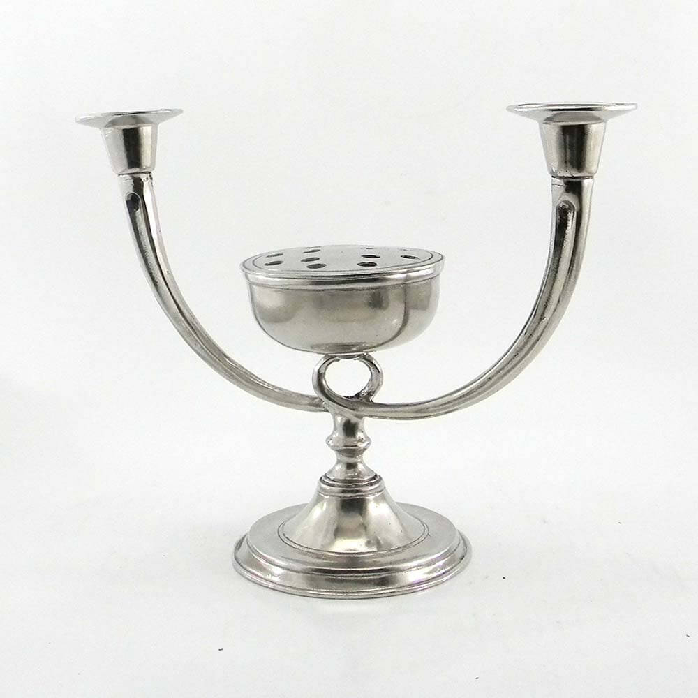 Candelabro in peltro con vasetto per fiori