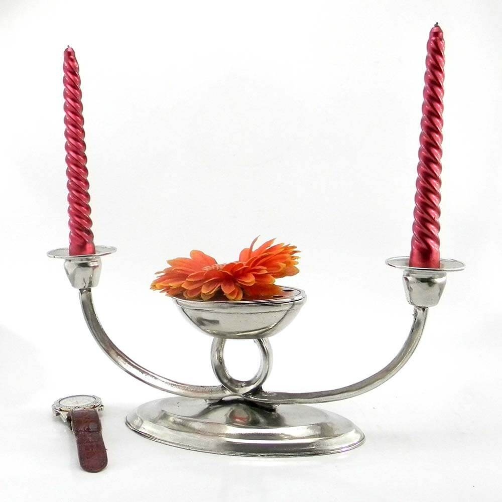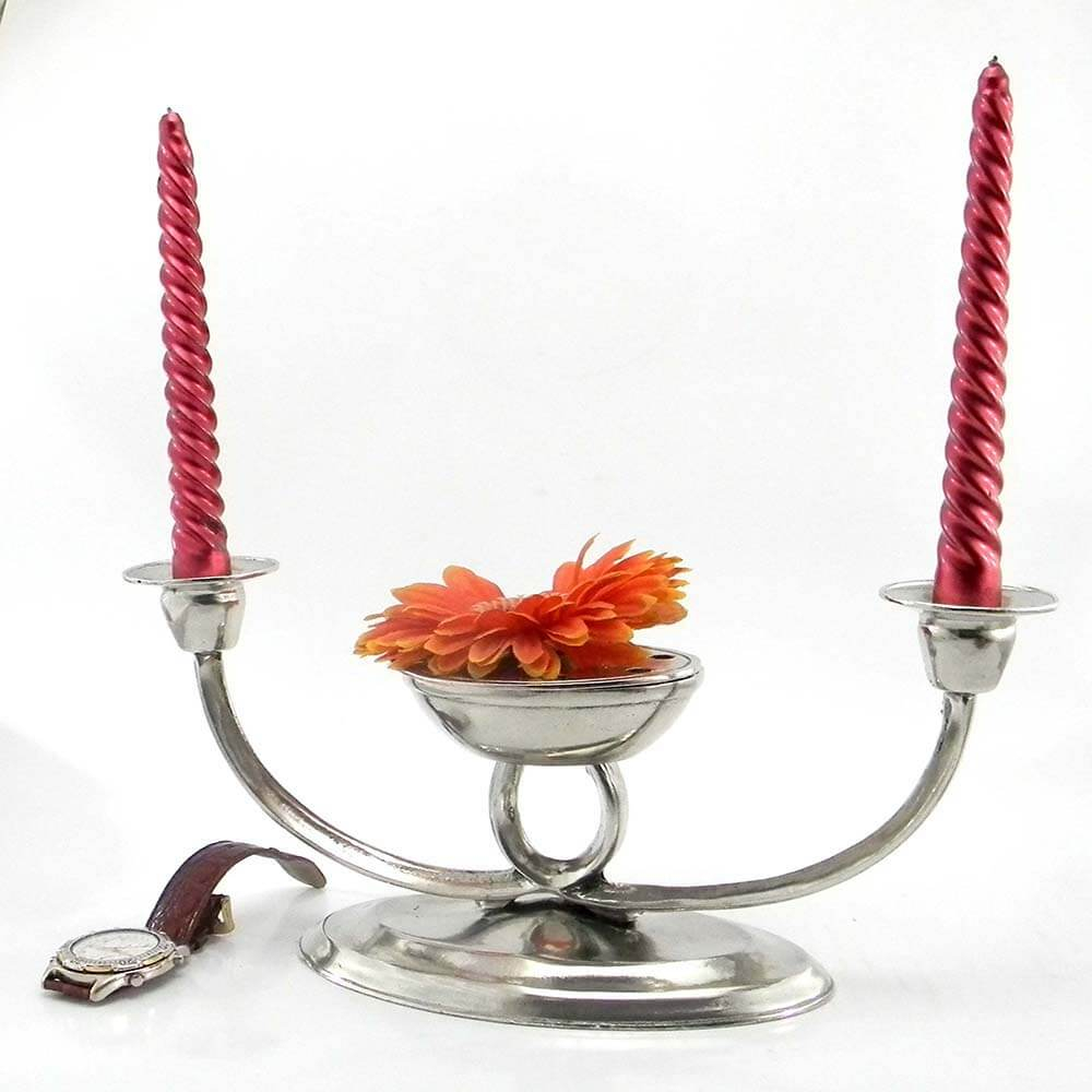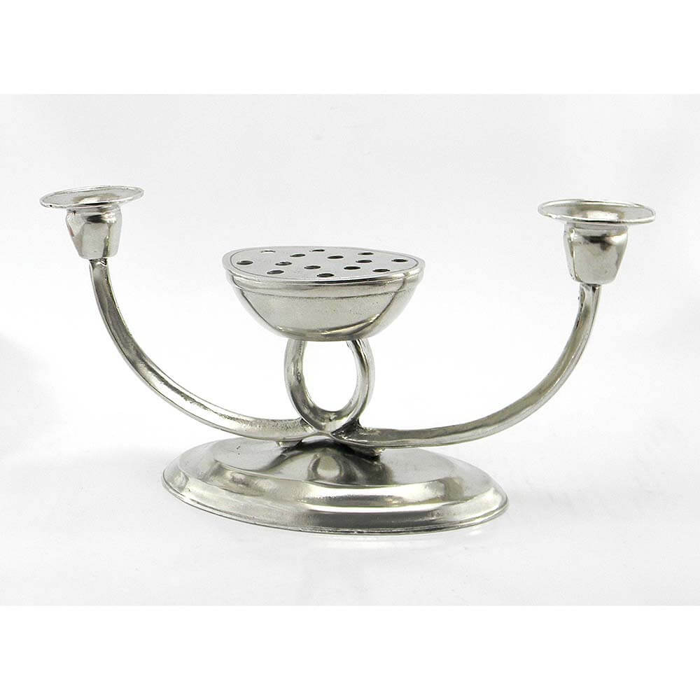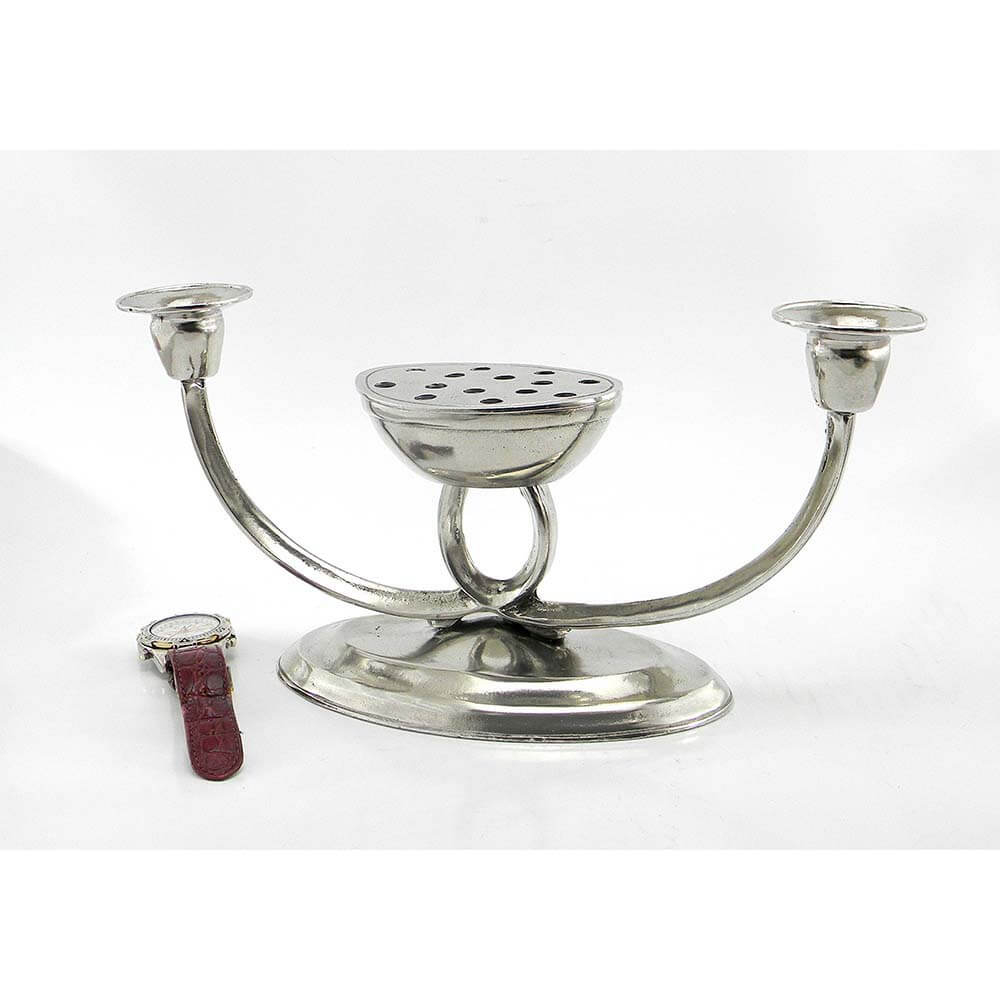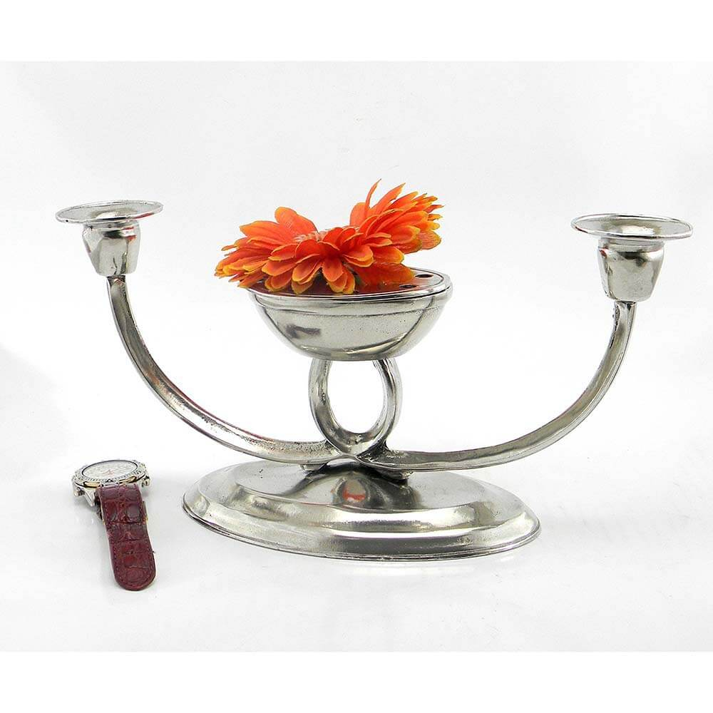 Candelabro artigianale in peltro basso con vasetto per fiori Cavagnini | E-Italy | 100% Made in Italy