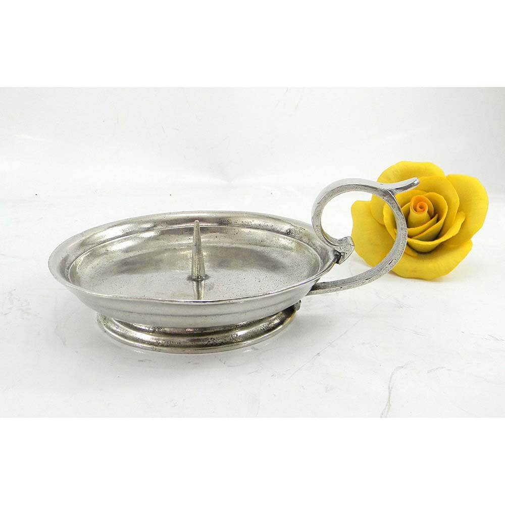 Questo portamoccolo in peltro piccolo con anello è realizzato a mano nei laboratori italiani della famiglia Cavagnini, che da 20 anni progetta e produce articoli in peltro. Roberto Cavagnini lo applica in modo magistrale a diversi usi più o meno domestici. I candelabri e i portacandela sono una delle collezioni che Roberto ha sviluppato negli anni per completare una gamma di complementi d’arredo particolarmente ricercati e ambiti in case eleganti e che amano i materiali pregiati come il pletro. Oltre alla decorazione della casa ci sono anche le collezioni di bicchieri e caraffe per le tavole di lusso. La sua vocazione e il suo sogno è quello di riportare all’antico splendore un materiale che si è prestato da secoli ad abbellire e impreziosire le nostre case con oggetti raffinati e pregiati. Lasciatevi incuriosire da tutti gli arredi che si possono realizzare con questo materiale nella collezione Cavagnini.