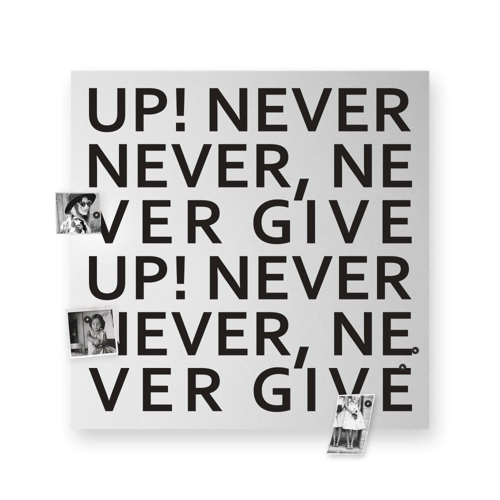 La lavagna magnetica Never Give Up in formato gigante di dESIGNoBJECT è un tributo ai resilienti. Ma in realtà è un board dedicato al tempo infinito, che non smette mai di passare. Se scegliete Never Give up avete qualcosa da raccontarci sopra con le vostre foto e i vostri memo, e grazie ai 5 accessori magnetici inclusi nella confezione. E come in tutti i capolavori di dESIGNoBJECT c'è bellezza, funzionalità e volontà di durare nel tempo. Il tutto esattamente con lo stile pi๠vicino a quello che avete scelto per casa vostra! Volete sapere di cosa è fatto? E' una lamiera tagliata a laser e laccata artigianalmente a polvere. Poi viene serigrafato a mano con una precisione che gli svizzeri si sognano!