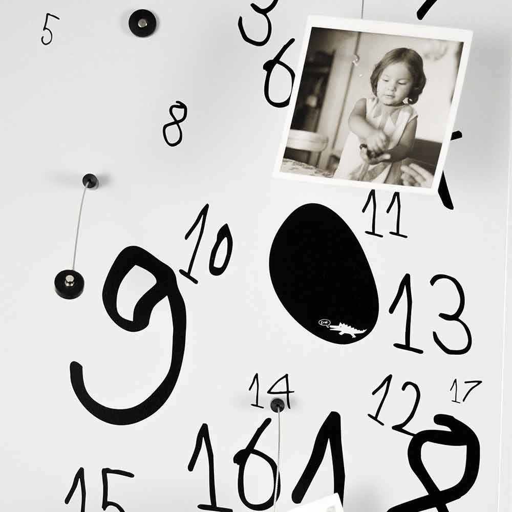 La lavagna magnetica verticale Krok2 di dESIGNoBJECT è un calendario perpetuo con 5 krokkini inclusi nella confezione. Con un magnete a una estremità e uno sull'altra i krokkini vi permettono di disporre i vostri ricordi, i vostri memo e le vostre foto su questo organizer da parete. E come in tutti i capolavori di dESIGNoBJECT c'è bellezza, funzionalità e volontà di durare nel tempo. Il tutto esattamente con lo stile pi๠vicino a quello che avete scelto per casa vostra! Disponibile in bianco e nero, ma anche in versione orizzontale e verticale. Volete sapere di cosa è fatto? E' una lamiera tagliata a laser e laccata artigianalmente a polvere. Poi viene serigrafato a mano con una precisione che gli svizzeri si sognano!
