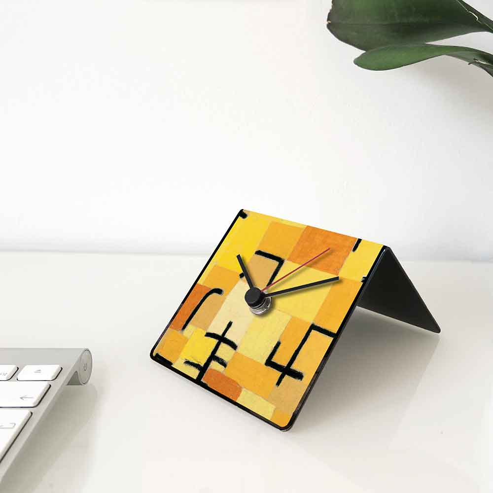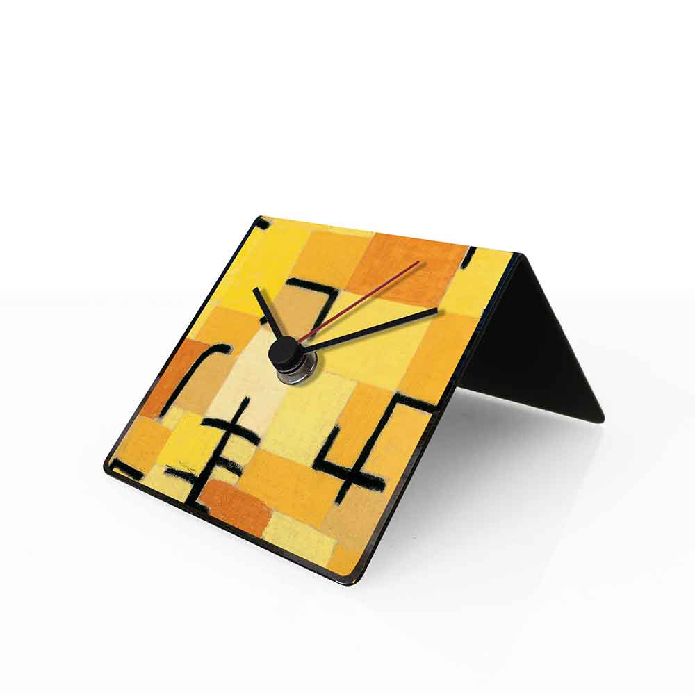 L'orologio da tavolo Klee dESIGNoBJECT è anche un calendario perpetuo, sul retro. Appartiene alla collezione Arte e vuole portare sulle nostre scrivanie e mensole l'arte in formato pop. Tenerlo davanti agli occhi tutti i giorni vuol dire ammirare pezzi d'arte unici nel loro genere. dESIGNoBJECT è avvezza ai capolavori di design dove c'è bellezza, funzionalità  e volontà  di durare nel tempo. Disponibile con diversi soggetti: Klee, Kandinsky, Munch, Boccioni, Duchamp, Mondrian, Monet, Van Gogh, Cezanne. E' una lamiera tagliata a laser, piegata e laccata artigianalmente a polvere. Con tre pratici magneti per aggiornare il calendario perpetuo, inclusi nella confezione!