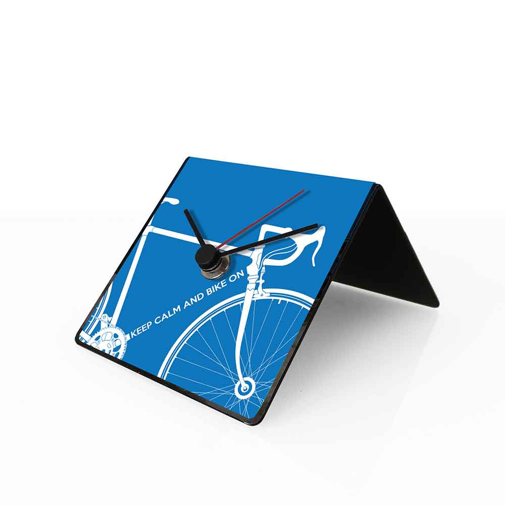 L'orologio da tavolo Bike blu dESIGNoBJECT è anche un calendario perpetuo, sul retro. Appartiene alla collezione Bike, ed è un tributo agli appassionati di bicicletta. Il motto è infatti un simpatico Keep Calm And Bike On! dESIGNoBJECT è maestra in design e bellezza, senza dimenticare la funzionalità  e la volontà  di durare nel tempo. Disponibile in diversi colori: verde, azzurro, grigio, blu, fucsia e arancione. E' una lamiera tagliata a laser, piegata e laccata artigianalmente a polvere. Con tre pratici magneti per aggiornare il calendario perpetuo, inclusi nella confezione!