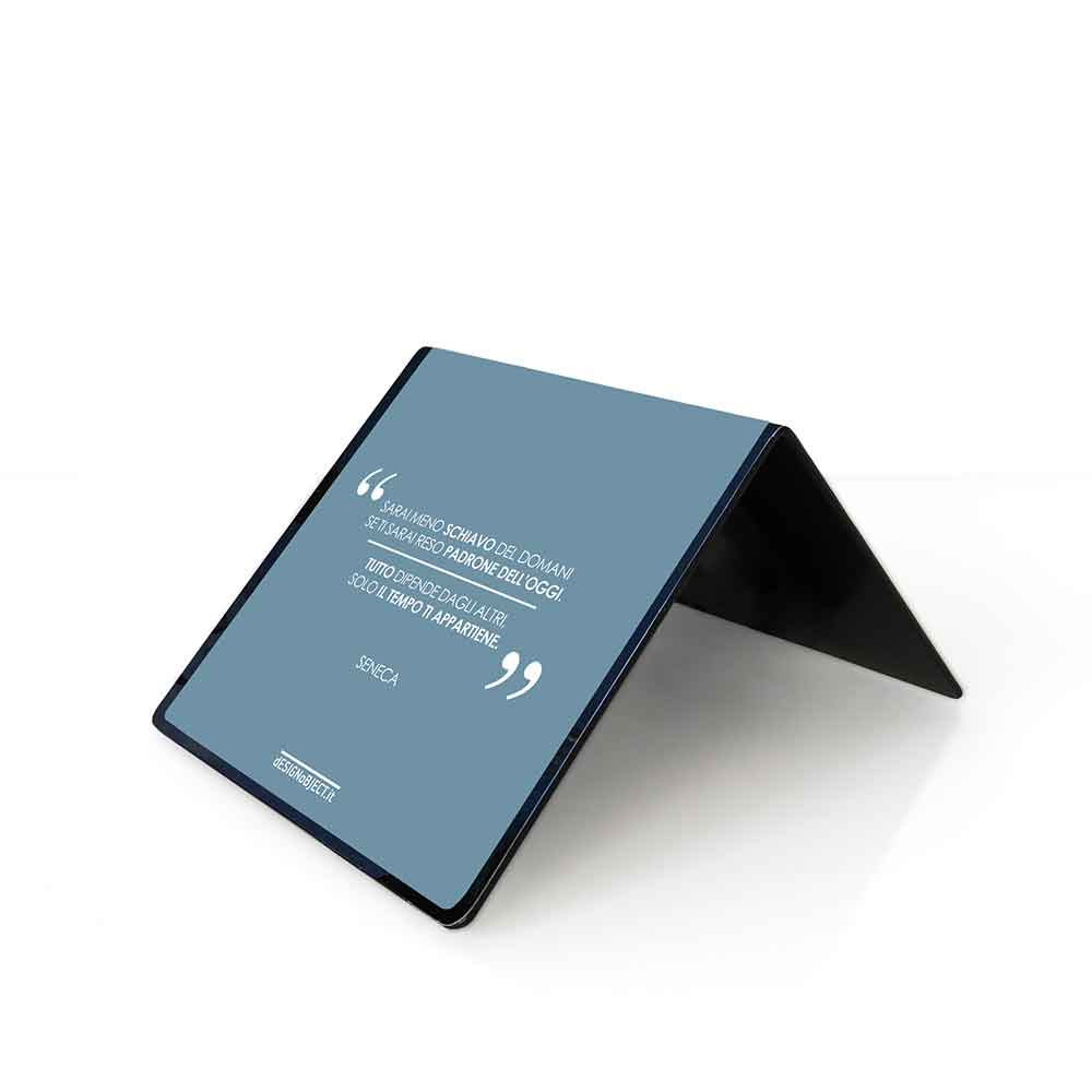 L'orologio da tavolo Seneca dESIGNoBJECT è anche un calendario perpetuo, sul retro. Appartiene alla collezione Cit, ed è un tributo agli appassionati di citazioni famose di grandi personaggi e saggi. dESIGNoBJECT è maestra in design e bellezza, compresa quella interiore, ma senza dimenticare la funzionalità  e la volontà  di durare nel tempo. Disponibile in diverse versioni: Tzu, Seneca e Gossman. E' una lamiera tagliata a laser, piegata e laccata artigianalmente a polvere. Con tre pratici magneti per aggiornare il calendario perpetuo, inclusi nella confezione!