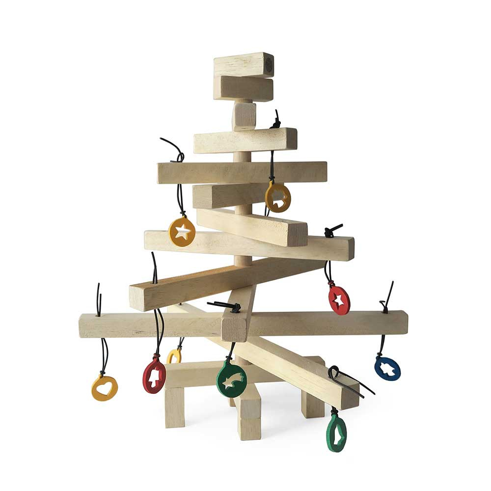 Albero di Natale legno di faggio cm 30x35 h fatto a mano in Italia | E-Italy | 100% Made in Italy