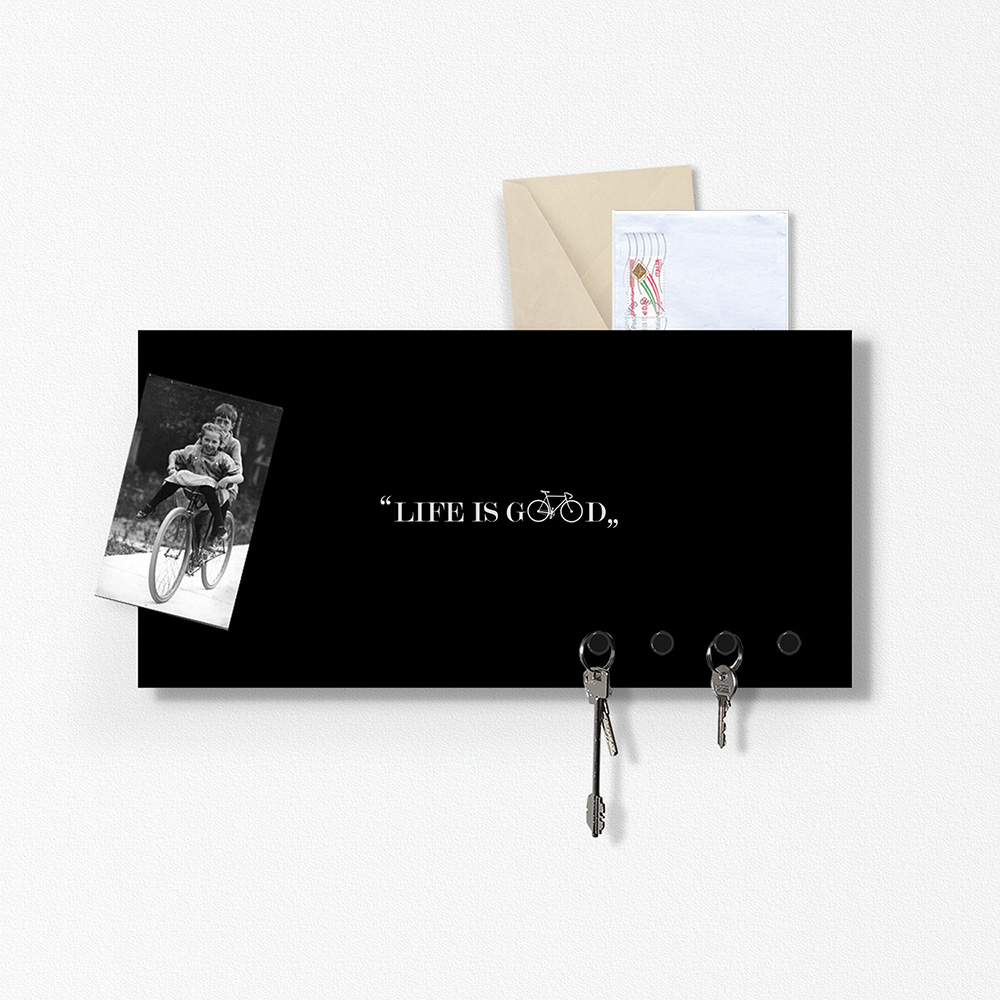 Portachiavi portalettere organizer Life is Good nero 40x20cm con 3 magneti