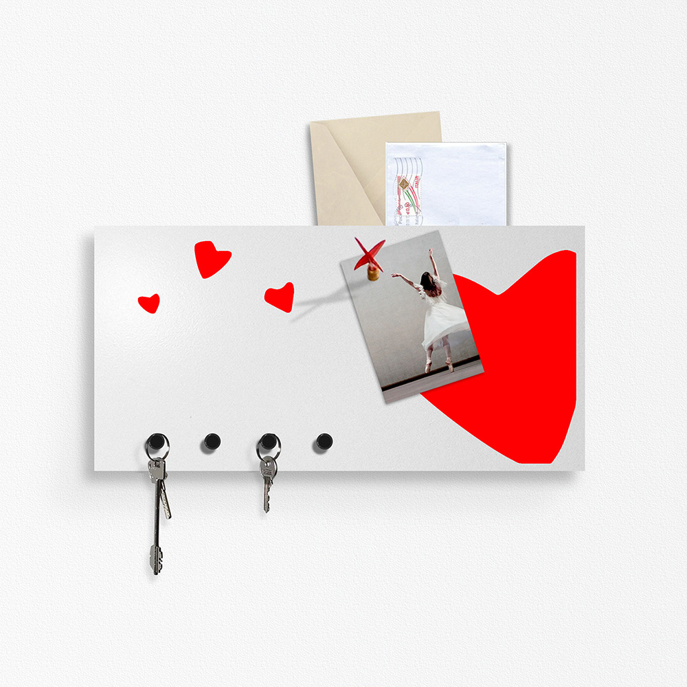 Il nuovissimo portachiavi da parete Heart di DesignObject è un accessorio multifunzionale che vi aiuterà su diversi fronti in casa: è infatti anche un pratico portalettere da tenere in entrata, quando arrivate e non sapete dove appoggiare la posta. Ma è anche un organizer, che grazie ai suoi tre magneti vi permetterà di appuntarvi tutti i vostri bigliettini eventi e memo. E' facile da montare a parete grazie ai due fischer inclusi nella confezione. Una volta fissato alla parete del vostro ingresso, in cucina o in ufficio, vi ritroverete ad ammirarlo come un quadro decorativo che allieta le pareti di casa vostra. Se invece avete deciso di farne un delizioso regalo, farete sicuramente centro!