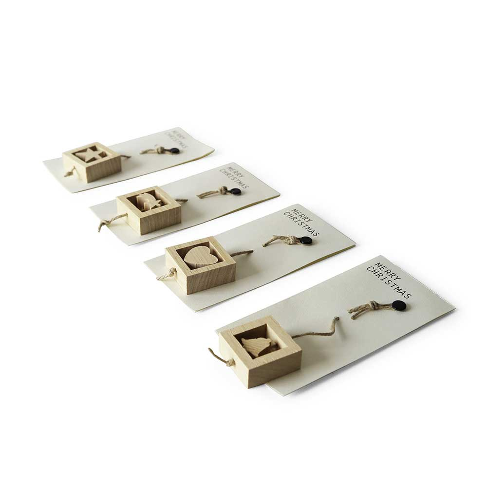 Queste graziose decorazioni in legno per il vostro albero di Natale sono anche contemporaneamente un pratico biglietto d'auguri. Potete approfittarne per fare il classico pensierino di Natale, il regalino semplice con il quale fare bella figura. Queste decorazioni per l'albero di Natale sono parte della collezione di DesignObject, disegnata e pensata per un Natale alternativo, eco-sostenibile, ma sempre bello e funzionale. Nella loro semplicità queste decorazioni-biglietto racchiudono la dolcezza del pensiero accurato per chi ci è caro, e rifuggono dalle pacchiane cineserie dalle quali a volte ci troviamo circondati a Natale. Scegliete una stella, un cuore, un angelo, una cometa o una campana, ma scegliete il meglio per voi e i vostri amici!