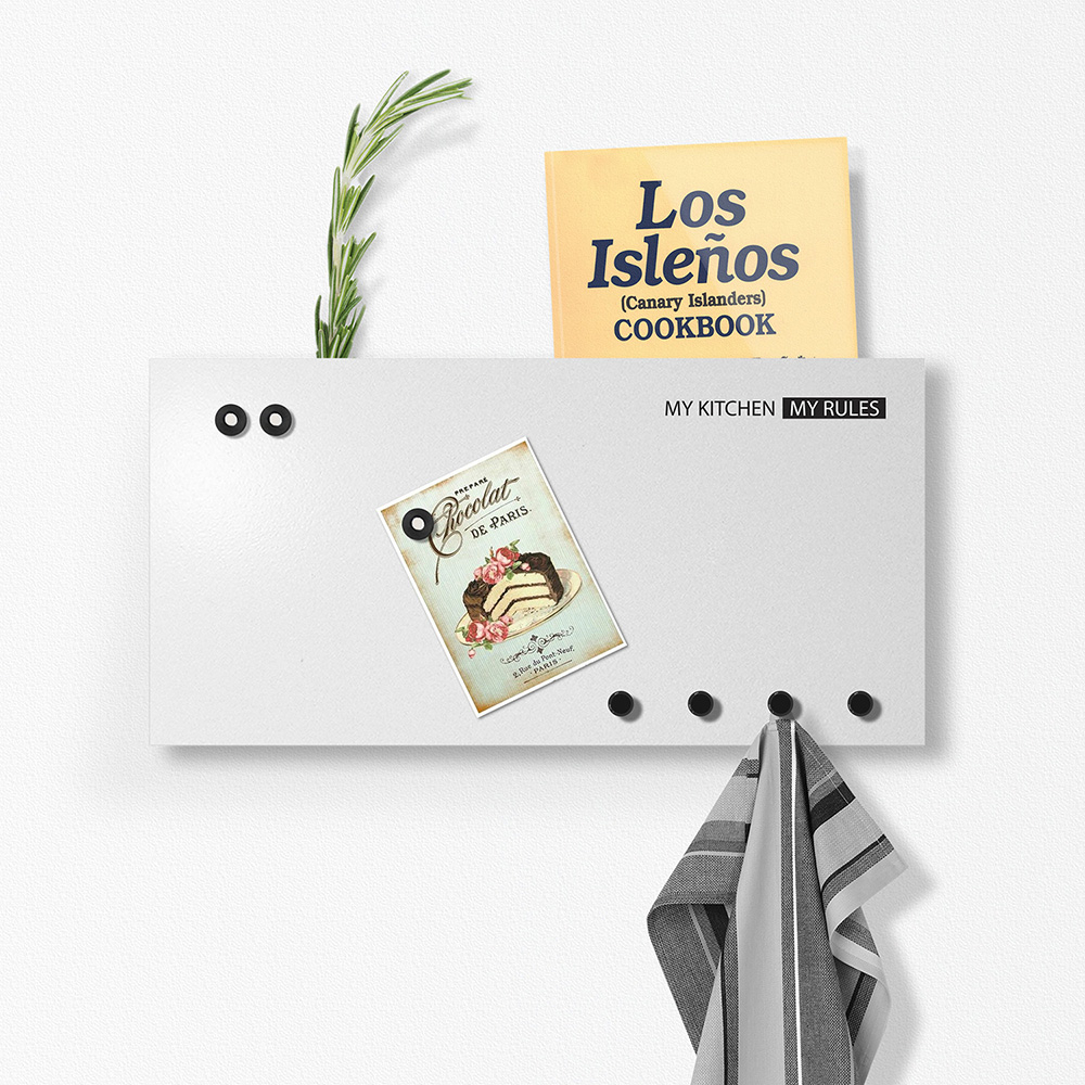 Il nuovissimo portachiavi da parete MyKitchen di DesignObject è un accessorio multifunzionale che vi aiuterà su diversi fronti in casa: è infatti anche un pratico portalettere da tenere in entrata o in cucina, quando arrivate e non sapete dove appoggiare la posta. Ma è anche un organizer, che grazie ai suoi tre magneti vi permetterà di appuntarvi tutti i vostri bigliettini con le ricette! E' facile da montare a parete grazie ai due fischer inclusi nella confezione. Una volta fissato alla parete del vostro ingresso, in cucina o in ufficio, vi ritroverete ad ammirarlo come un quadro decorativo che allieta le pareti di casa vostra. Se invece avete deciso di farne un delizioso regalo, potete scegliere tra il nero o il grigio chiaro (RAL 7035). A voi la scelta!