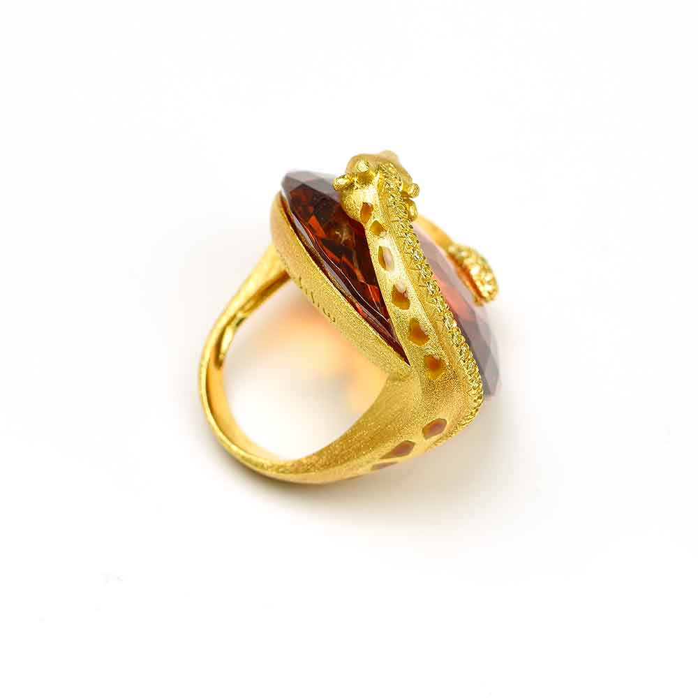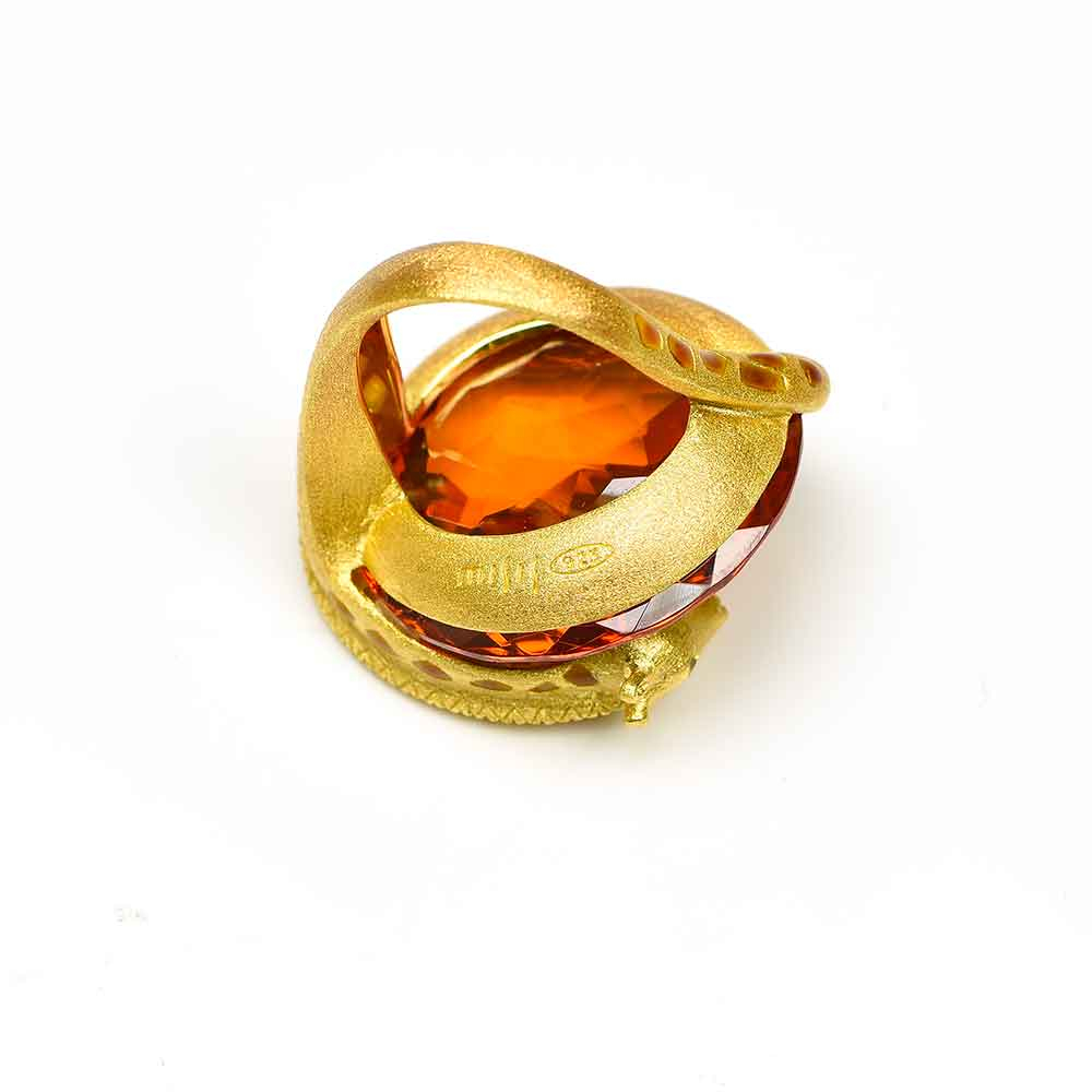 Anello con giraffa in argento, quarzo citrino, zirconi gialli e smalto | E-Italy | 100% Made in Italy