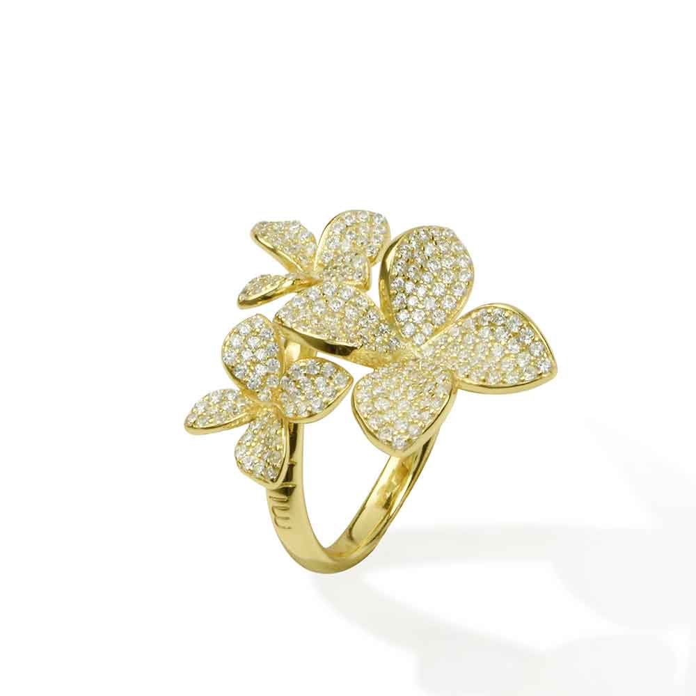 Anello design 3 fiori in argento con pavé di zirconi bianchi | E-Italy | 100% Made in Italy