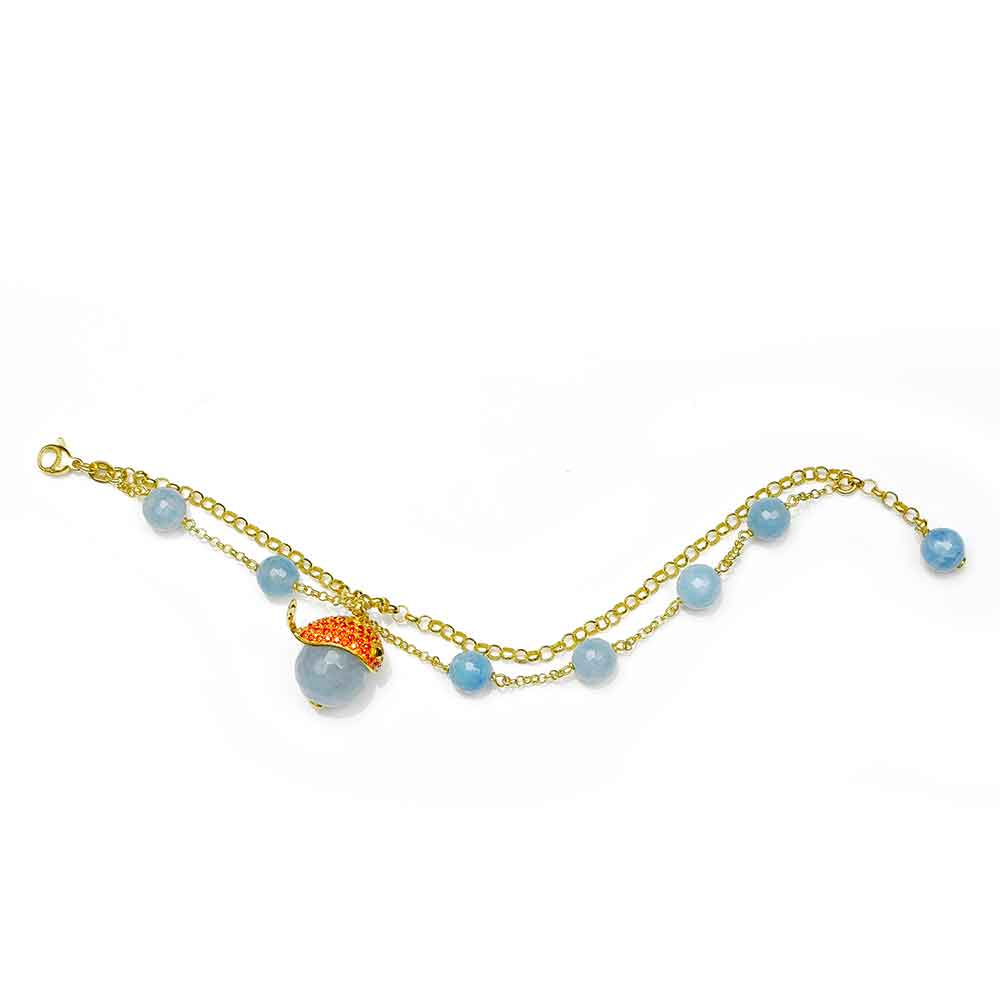 Materiali:argento 925 placcato oro giallo 18 kt, agata azzurra, zirconi arancioni