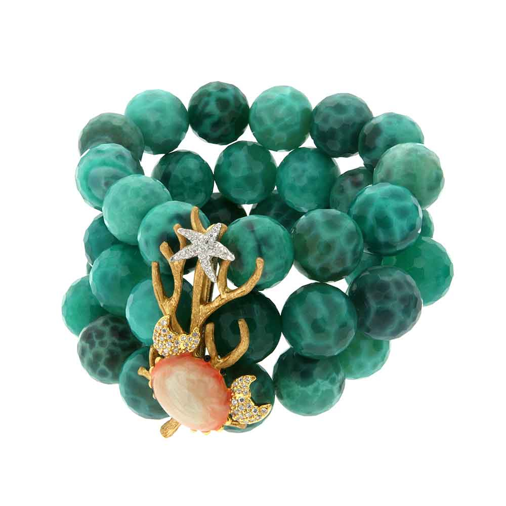 Bracciale con sfere di agata verde, ramo di coralli e granchio