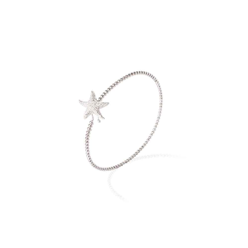 Bracciale rigido in argento con stella marina di zirconi