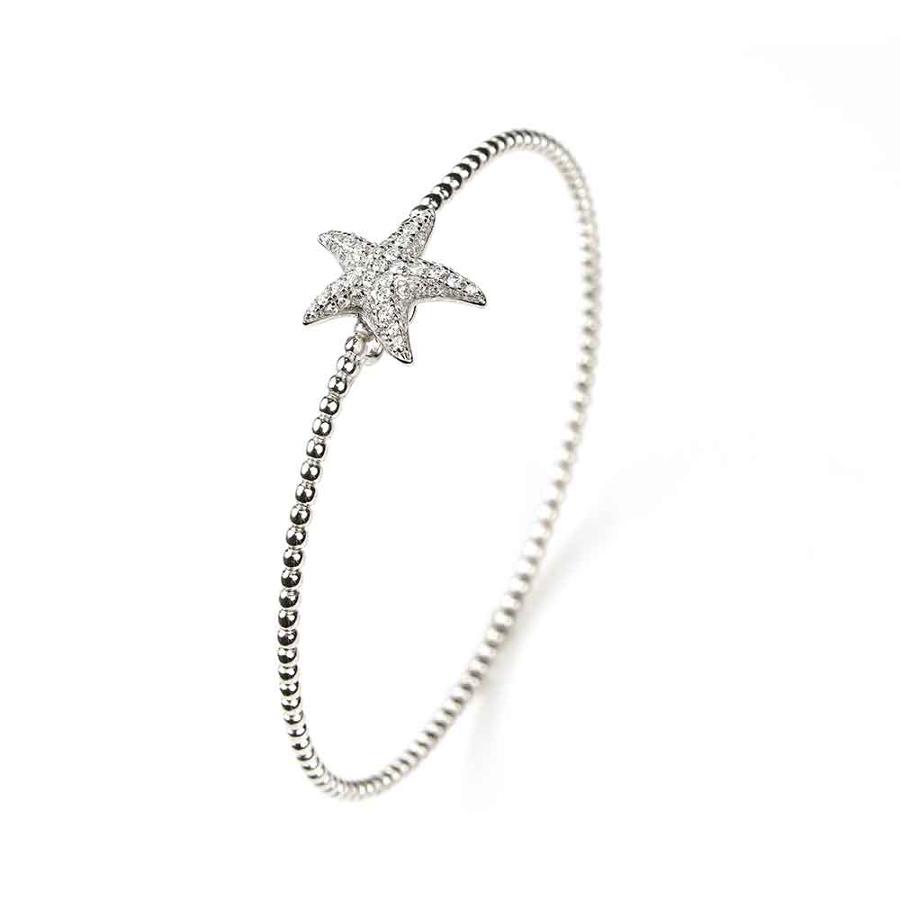 Bracciale rigido in argento con stella marina di zirconi | E-Italy | 100% Made in Italy
