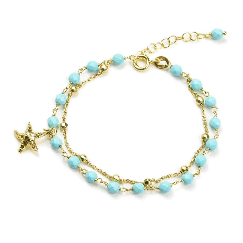 Bracciale in argento, sfere di pasta di turchese e charm stella marina | E-Italy | 100% Made in Italy