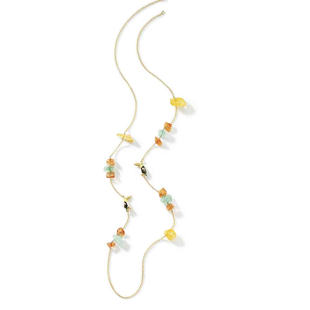 Collana in argento con quarzi colorati e tucani in zircone e smalti | E-Italy | 100% Made in Italy