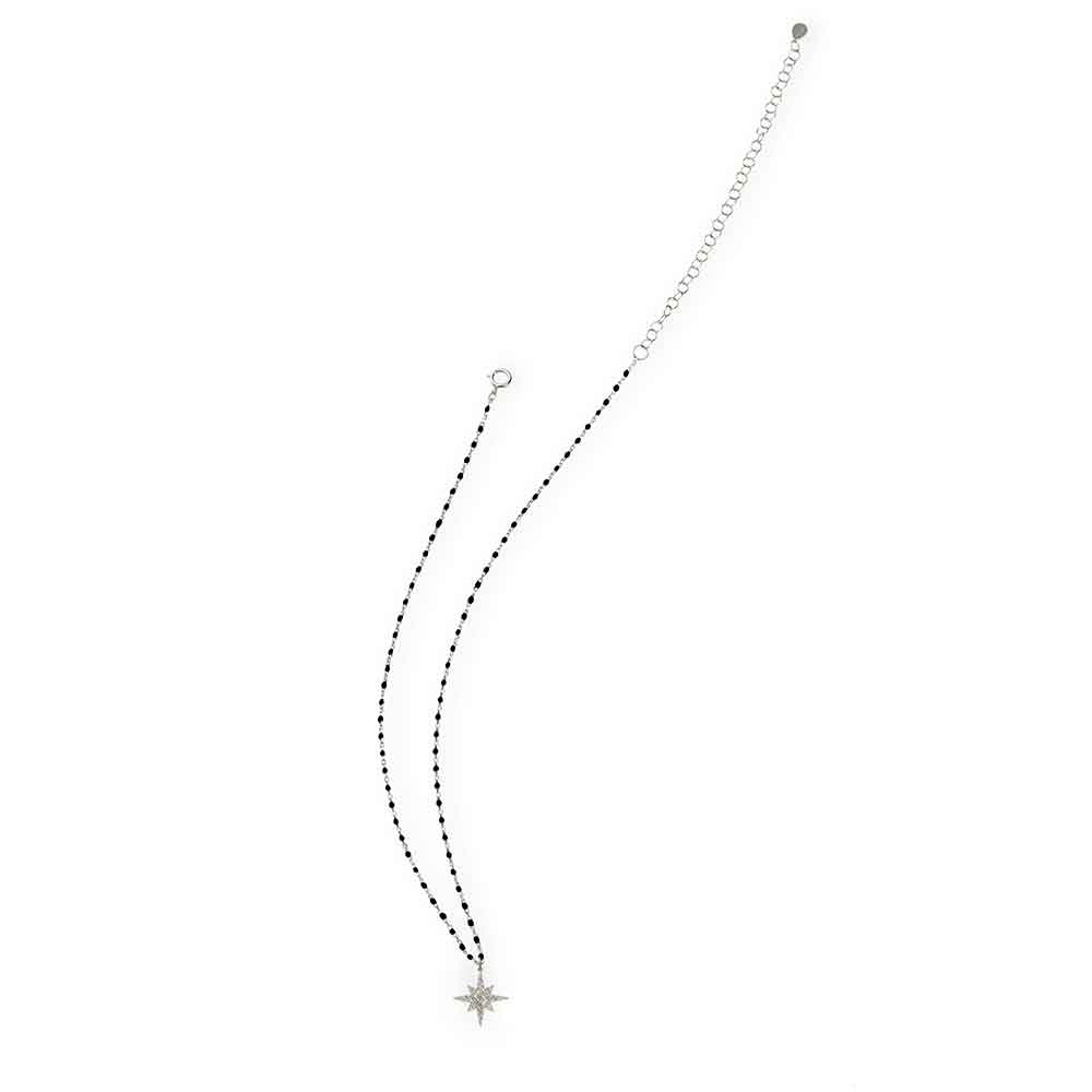 Catena in argento con perline in smalto nero e rosa dei venti di zirconi | E-Italy | 100% Made in Italy