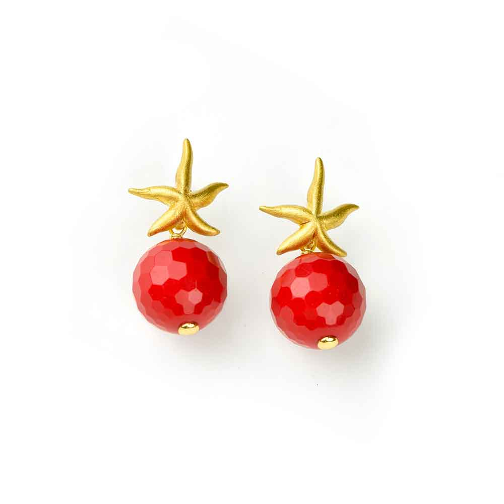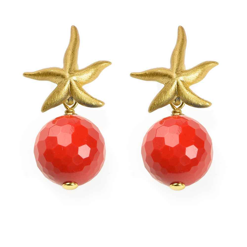 Orecchini in argento con stella marina e sfera in pasta di corallo | E-Italy | 100% Made in Italy