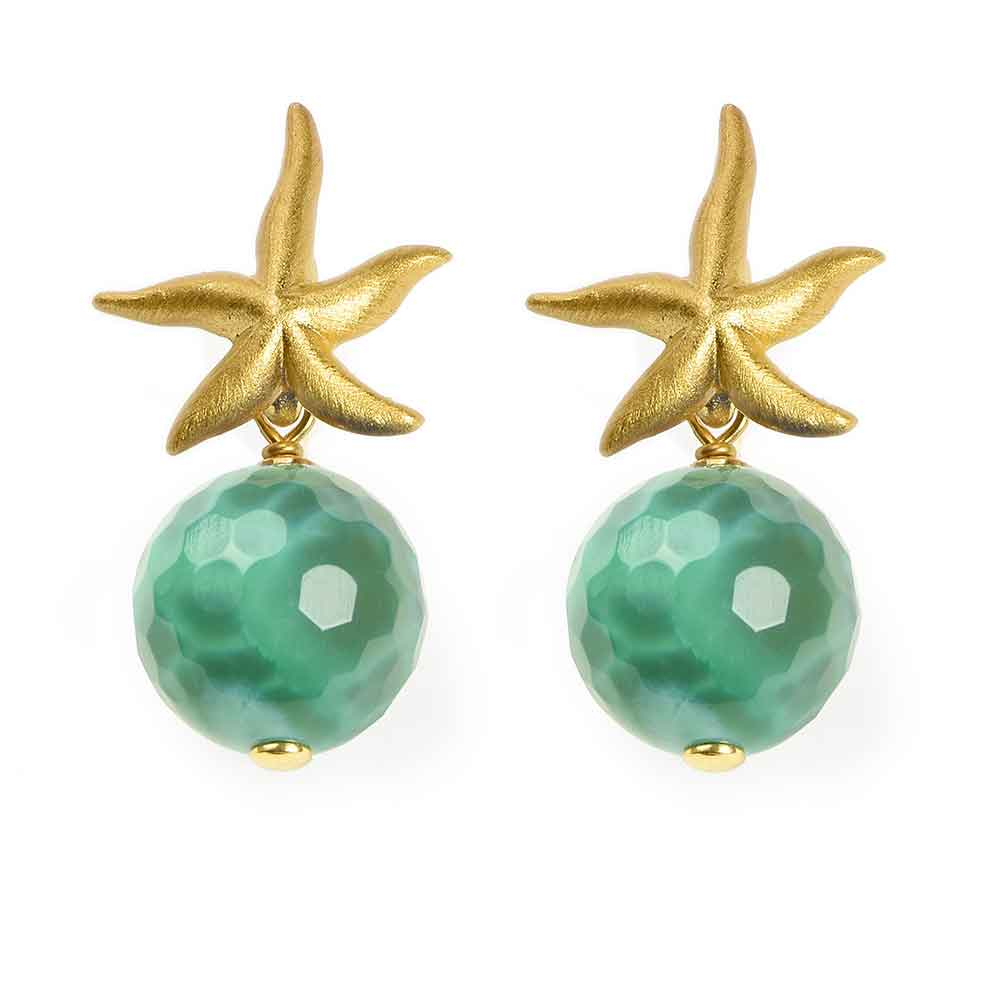Orecchini pendenti in argento con stella marina e sfera in agata cracked