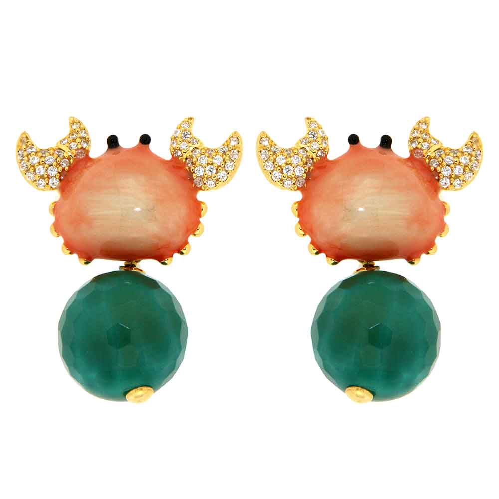 Orecchini pendenti in argento granchio in smalto e sfera di agata verde | E-Italy | 100% Made in Italy