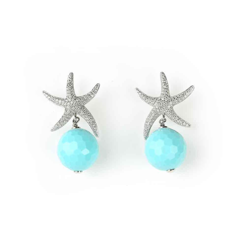 Orecchini pendenti in argento con stella marina di zirconi e sfera di pasta di turchese