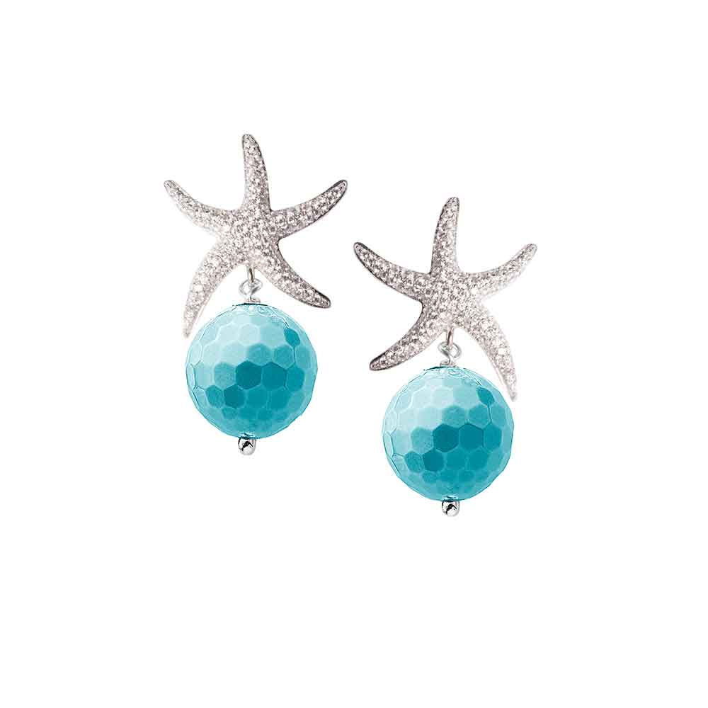 Orecchini in argento con stella marina e sfera di pasta di turchese | E-Italy | 100% Made in Italy