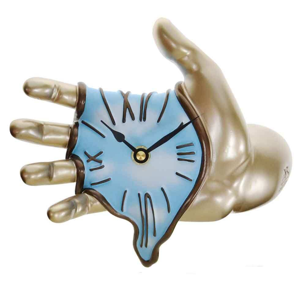 Orologio da muro Mano oro/azzurro in resina decorata a mano | E-Italy | 100% Made in Italy