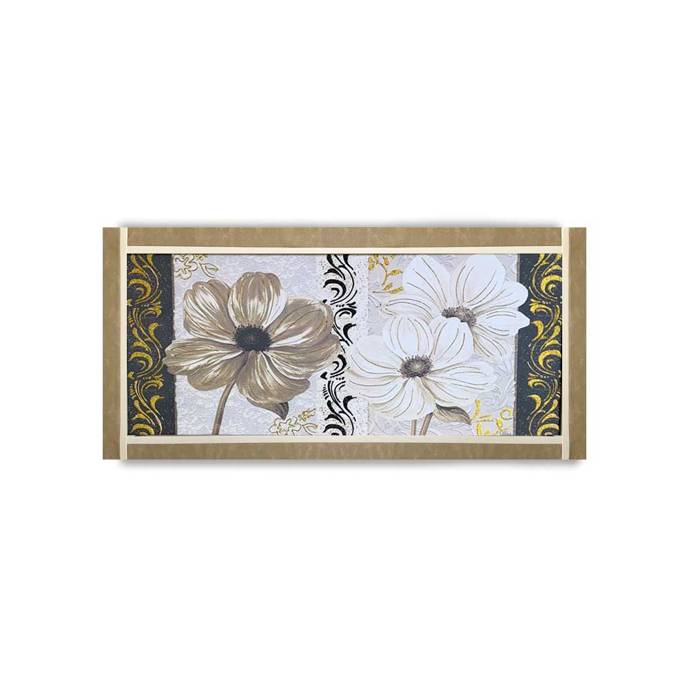 Quadro Ariel ecopelle beige floreale 18 canvas+glitter oro e nero 132x62cm