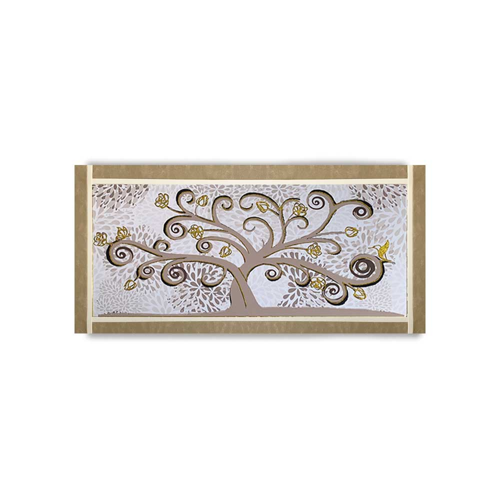 Quadro Ariel ecopelle beige albero della vita 24 canvas+glitter oro 132x62cm